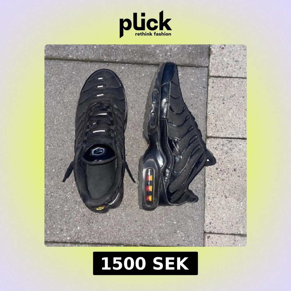 Helt nya Nike Air Max Plus Tn i helsvart med mesh och syntetpaneler, ikoniska vågformade detaljer och synlig Air Max-dämpning i sulan. Skorna har snörning och Tn Air-logga på hälen och sulan. Perfekta för dig som gillar streetwear och sportig stil.