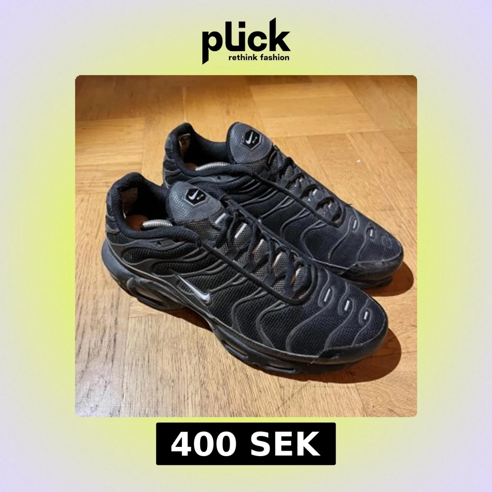 Nike Air Max Plus Tn sneakers i helsvart med ikoniska vågiga detaljer och Tn Air-logga på hälen. Ovandel i mesh och syntet, med snörning och platt sula. Snygg och sportig siluett som sticker ut med sina unika linjer och diskreta silverdetaljer.