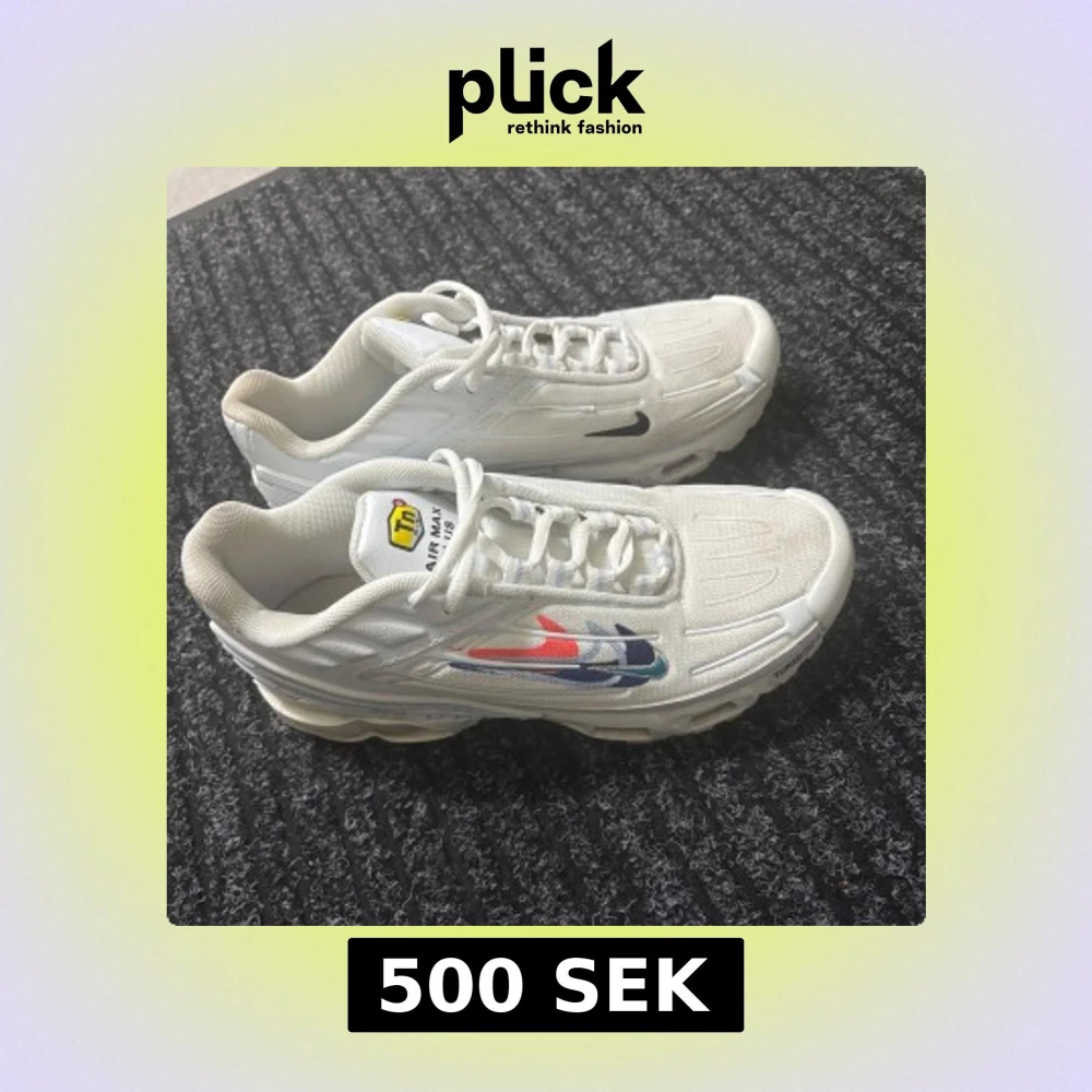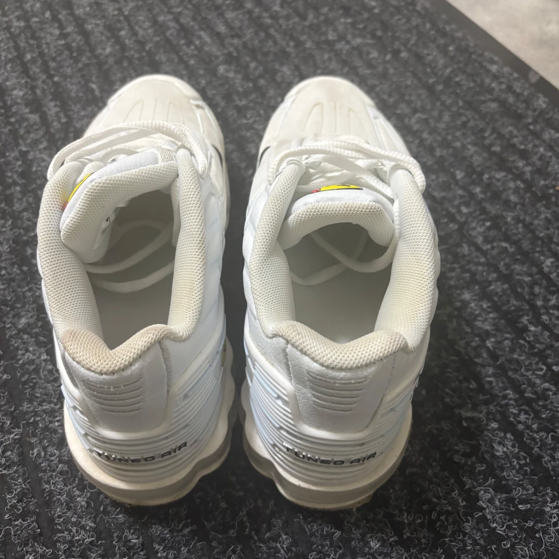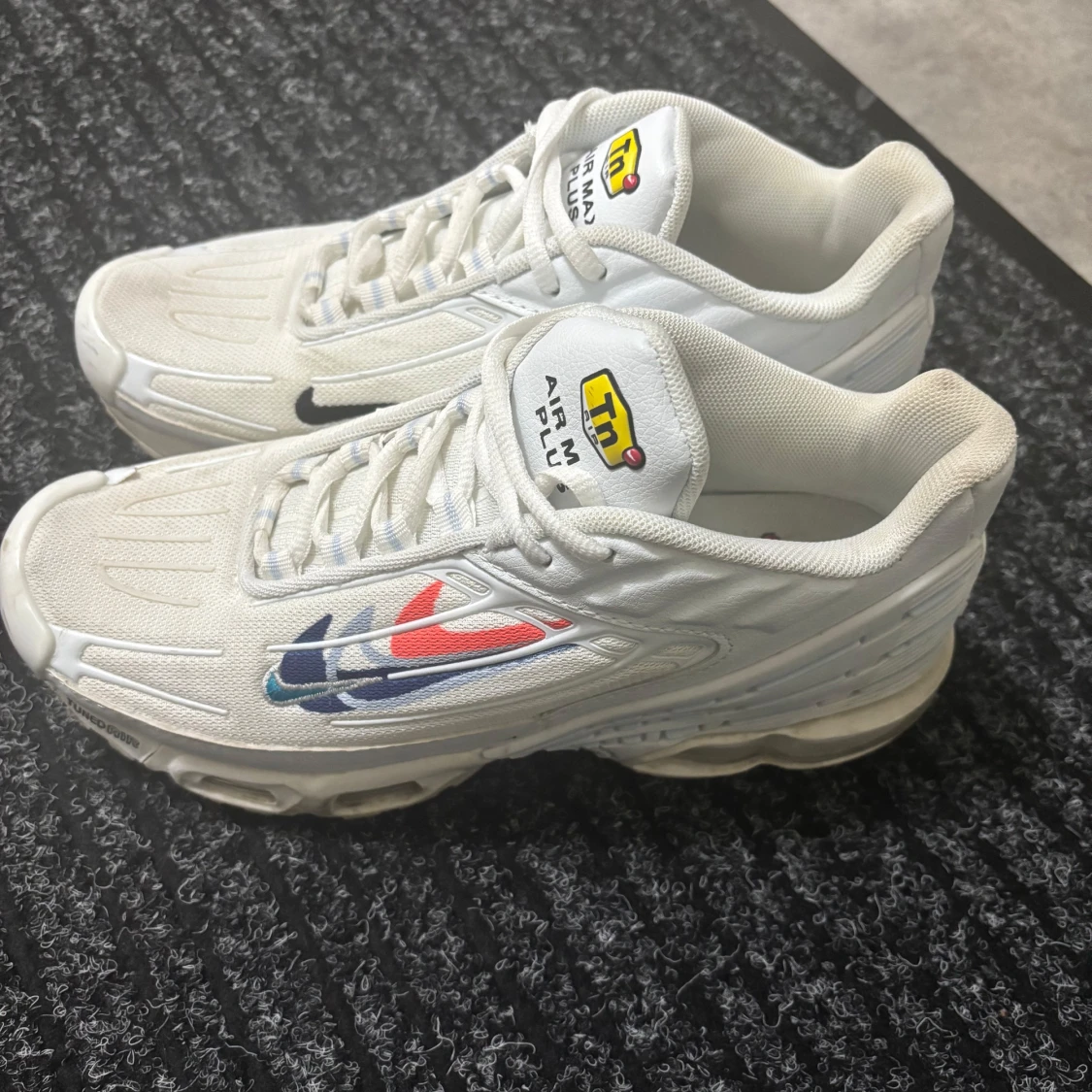Nike Air Max Plus sneakers i vitt med coola detaljer i rött och blått på sidan. Skorna har snörning, mesh och syntetmaterial, samt den klassiska Tn-loggan på plösen. Snygg och sportig vibe med synlig Air-sula och svart mini-Swoosh.
