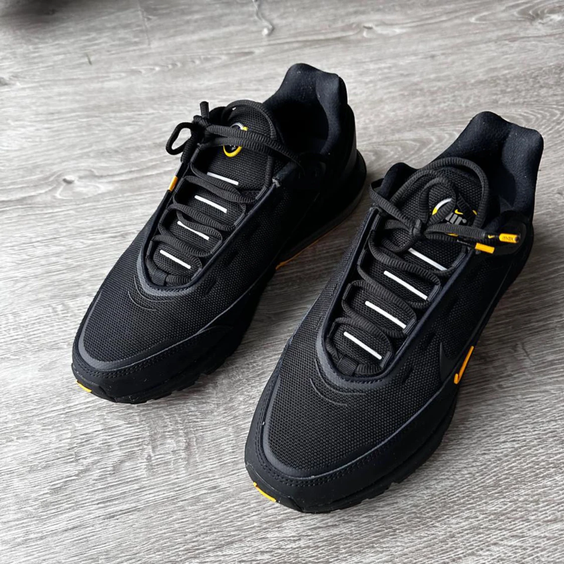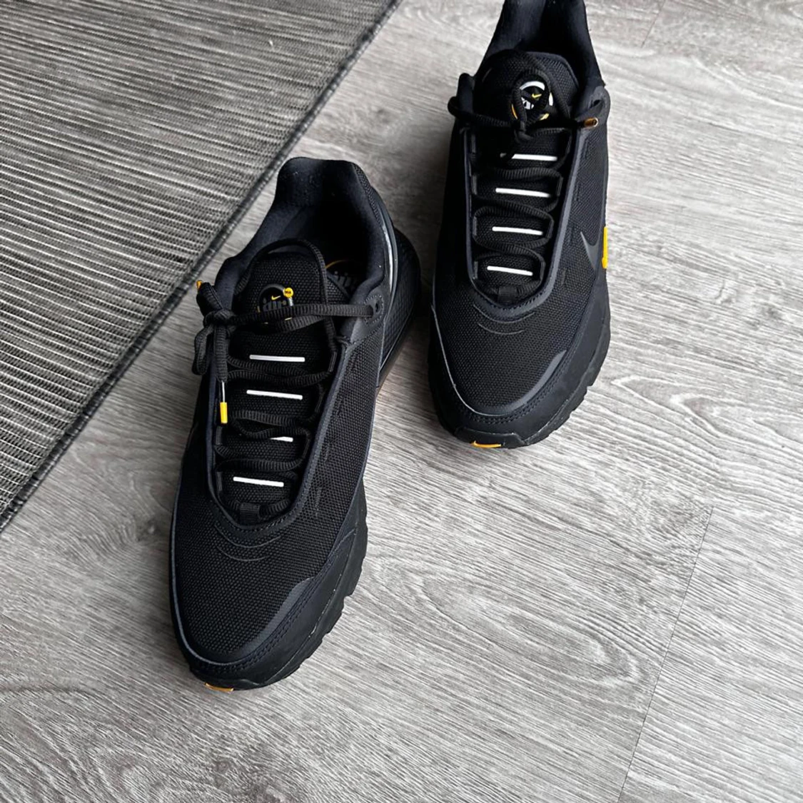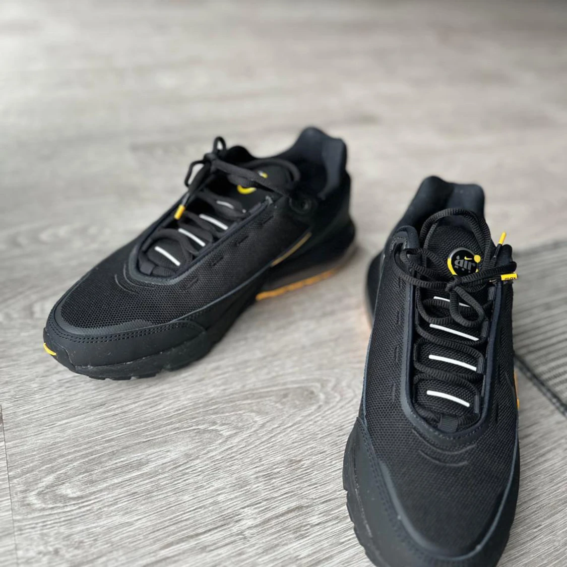 Svarta Nike Air Max Pulse sneakers med gula detaljer och vit snörning. Snygg mesh- och syntetöverdel, diskret Swoosh på sidan och Air Max-dämpning i sulan. Perfekta för dig som vill ha en clean och sportig look med lite edge. Skorna är aldrig använda ute,köpta i officiell butik i Kroatien. Finns ej box kvar på grund av att behövde mer plats för de. Finns kvitto kvar☺️ Storlek-43 27,5cm Färgen är väldigt rare,finns inte många såna.