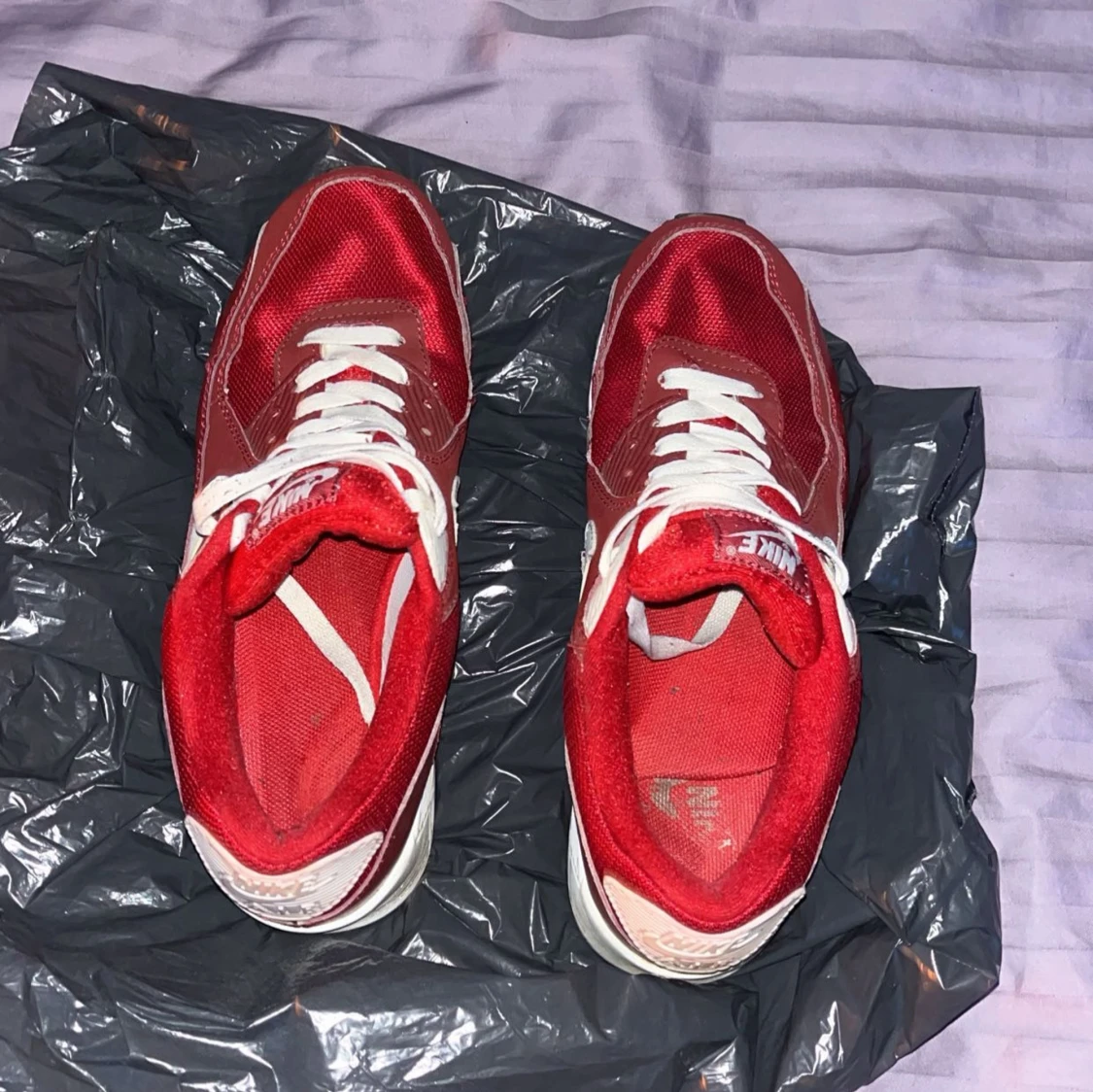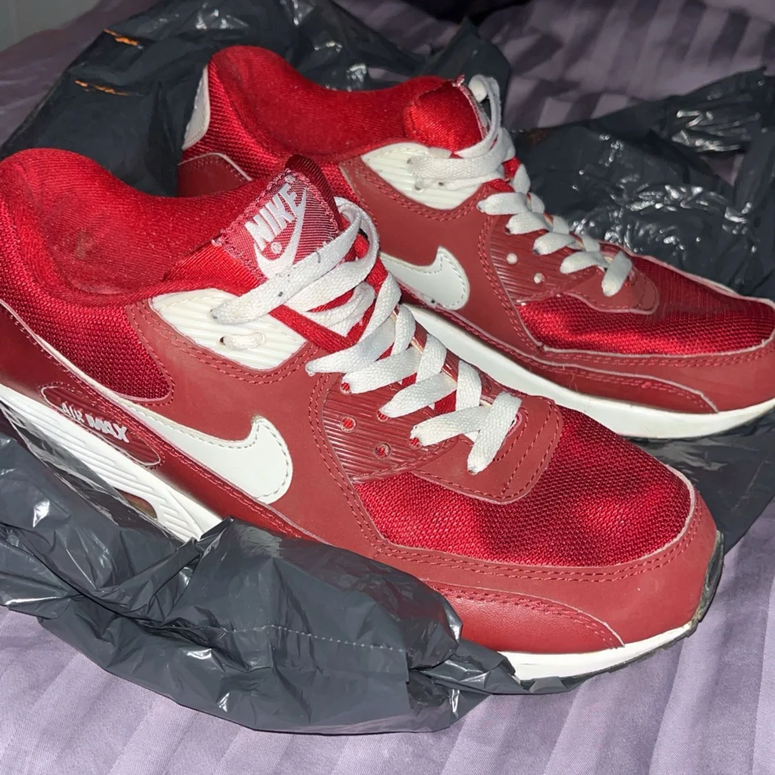 Snygga Nike Air Max sneakers i rött och vitt med klassisk design. Skorna har vit sula, vita snören och detaljer samt mesh och syntetmaterial på ovandelen. Perfekta för dig som vill sticka ut med ett par färgstarka och bekväma sneakers.