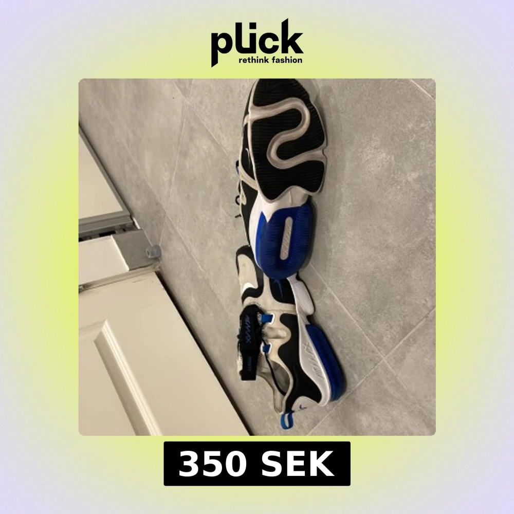 Snygga Nike Air Max sneakers i svart, blått och vitt. Skorna har en modern design med synlig Air Max-dämpning och snörning. Perfekta för en sportig look.