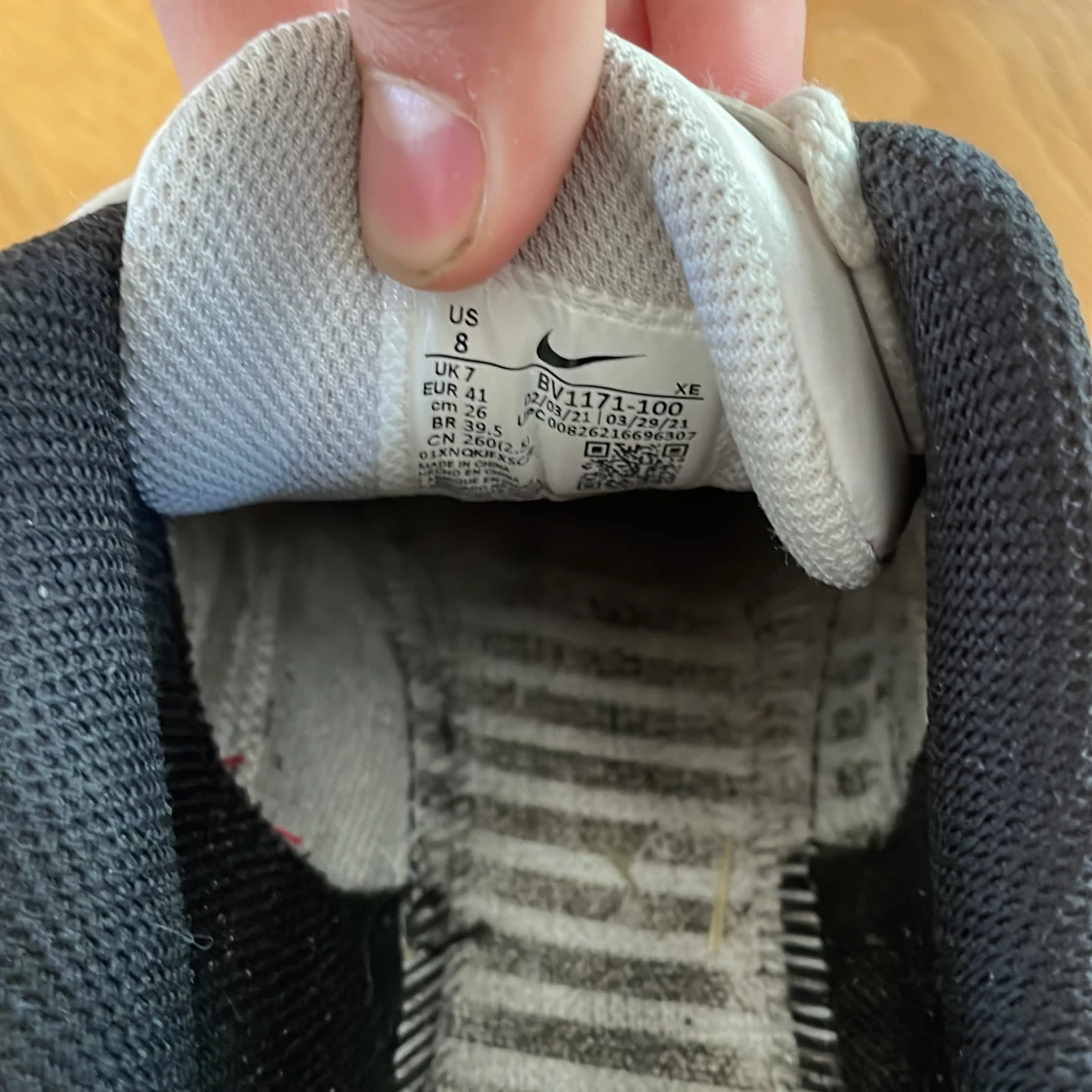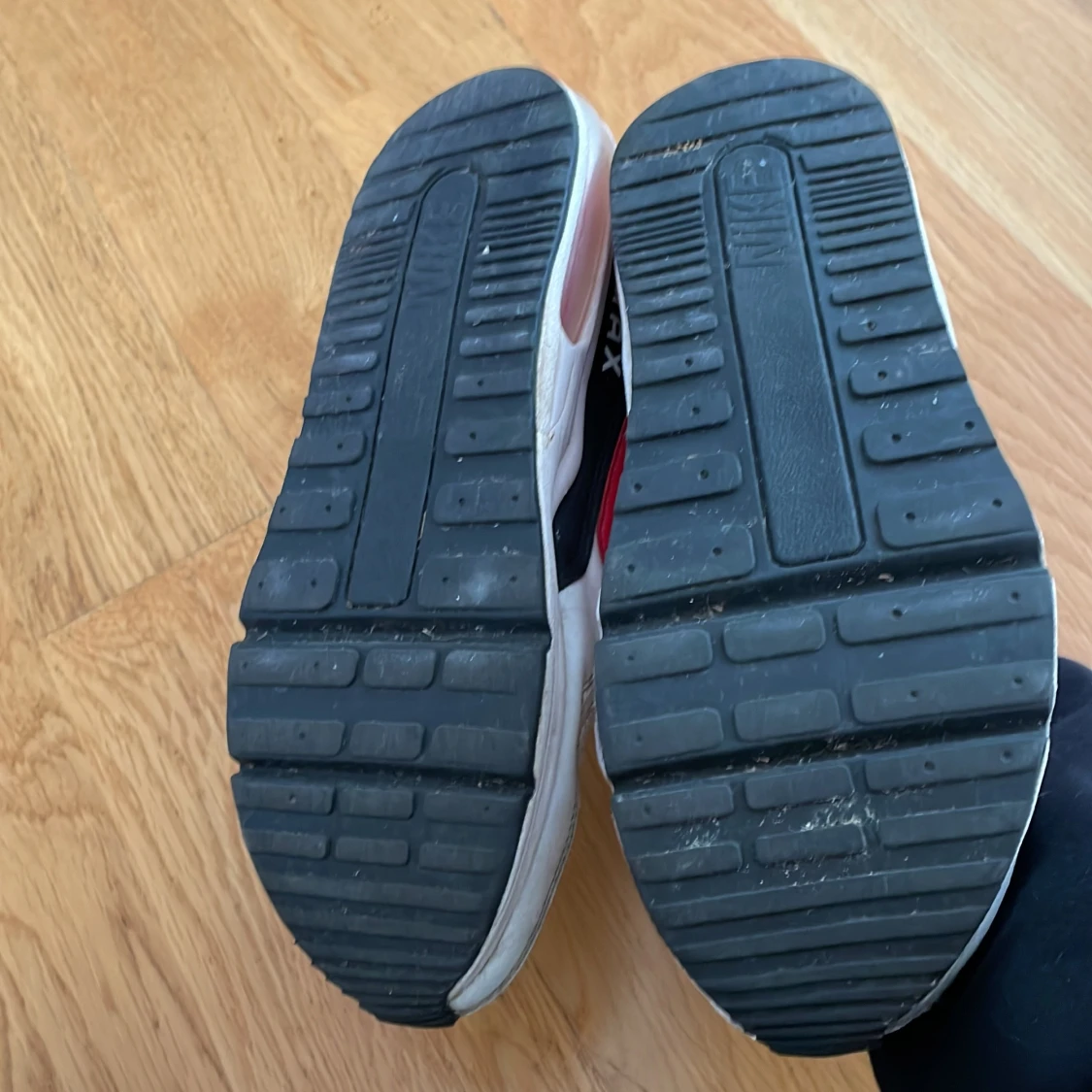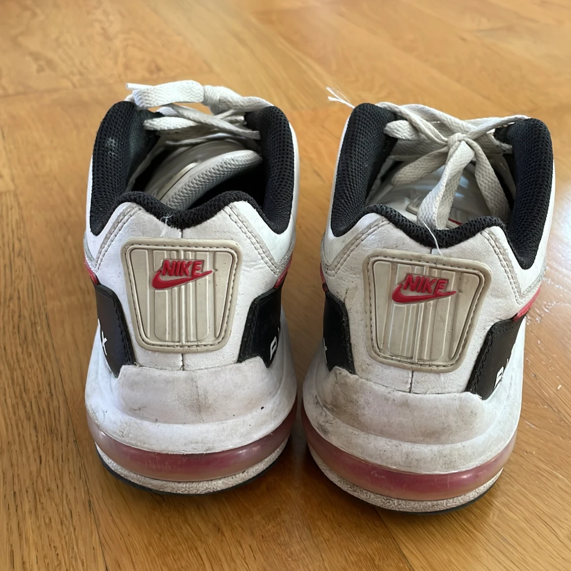 Nike Air Max sneakers i vitt med röda och svarta detaljer. Klassisk Air Max-dämpning i sulan och tydlig Nike-logga på sidan. Skorna har snörning och svart innermaterial. Perfekta för dig som gillar sportig och retro stil.