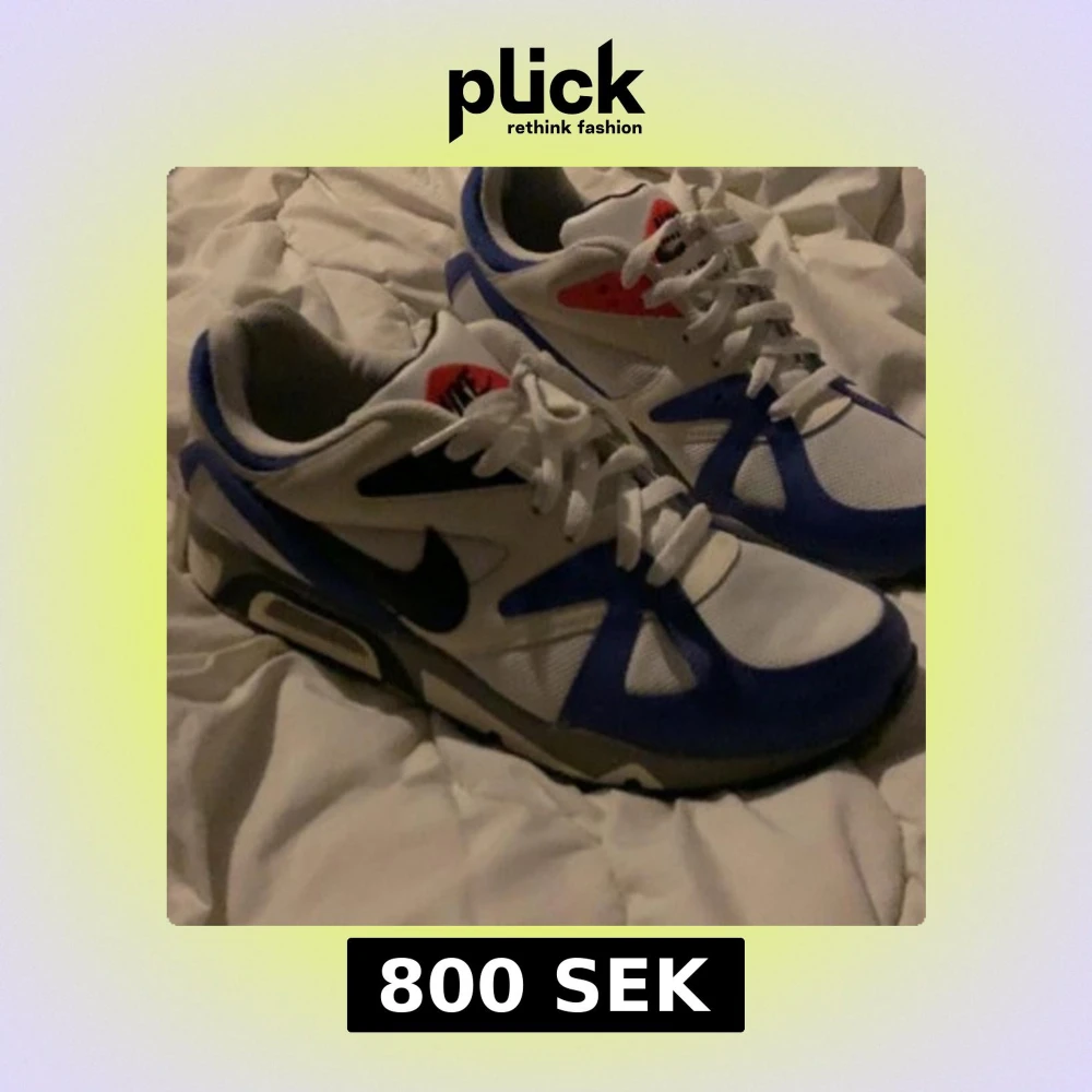 Snygga Nike Air sneakers i en fräsch kombination av vitt, blått och rött. Skorna har en klassisk design med snörning och en bekväm passform. Helt nya nästan oanvända har haft på mig dom max 4 gånger. Ny pris är 1600kr och sälj billigt för att jag personligen inte tycker om dom och fick dom i present. Passar inte min stil därför säljer jag dom. Behöver också pengar till en böter som måste betalas därför är det lågt pris
