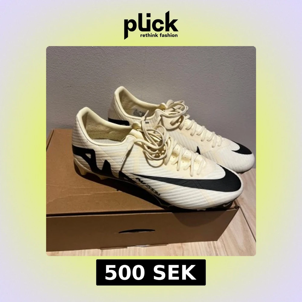 Snygga fotbollsskor från Nike med svarta detaljer och snörning. Perfekta för fotbollsplanen med en stilren design och bra grepp. Helt oanvända.