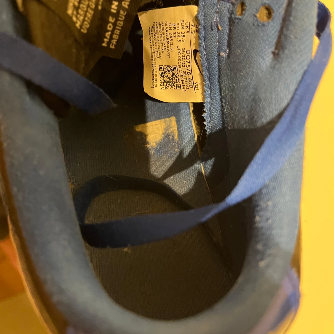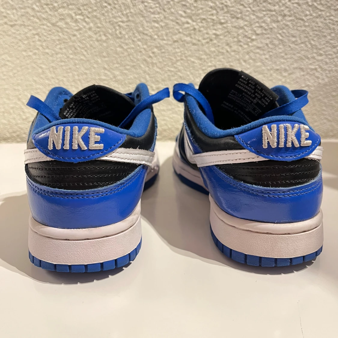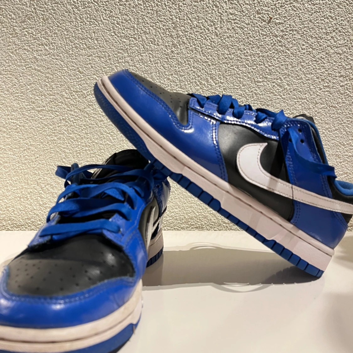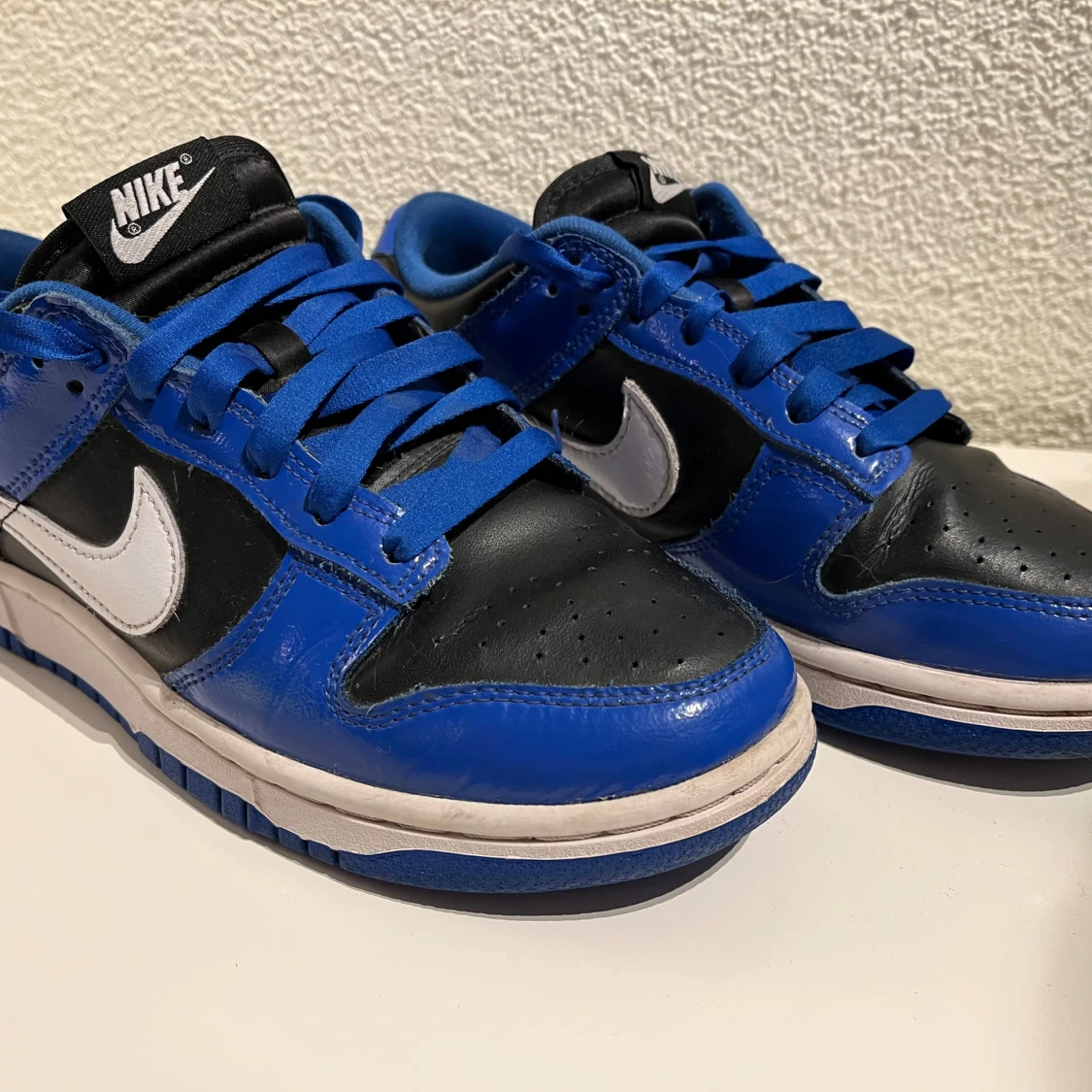 Snygga Nike Dunk sneakers i en fräsch kombination av blått, svart och vitt. Skorna har en klassisk design med snörning och med Nike-loggan på sidan. Perfekta skor för sommaren och väldigt bra skick även fast de har används! Skriv för mer information 🤩