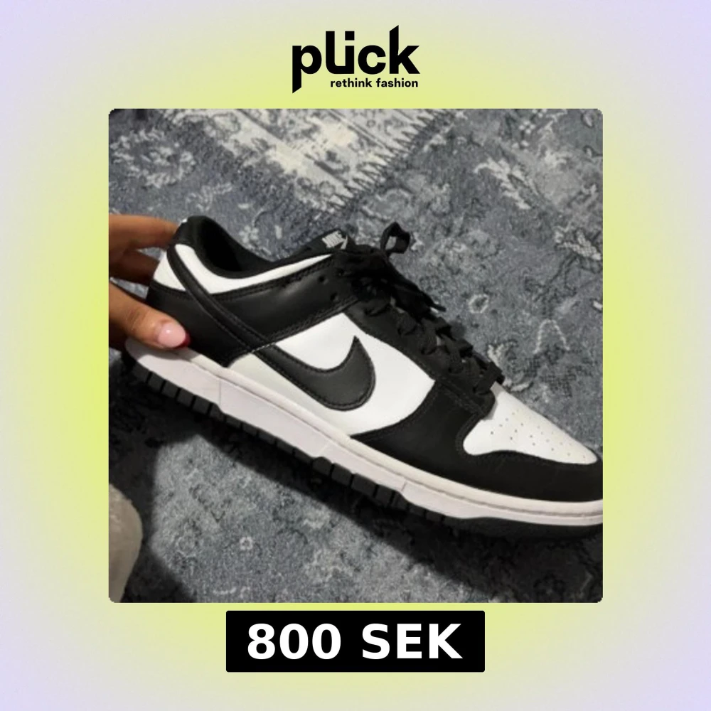 Snygga Nike Dunk sneakers i klassisk svart och vit färgkombination. Skorna har en stilren design med snörning och den ikoniska Nike-loggan på sidan. Perfekta för en sportig och trendig look.