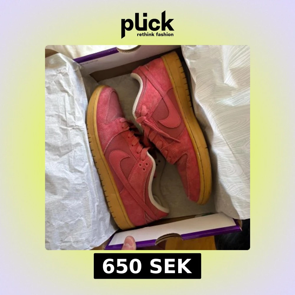 Säljer ett par snygga röda sneakers från Nike med en klassisk design. Skorna har en gul sula och är tillverkade i mocka med snörning. Perfekta för en avslappnad stil. Finns med kvitto direkt från junkyard Stockholm