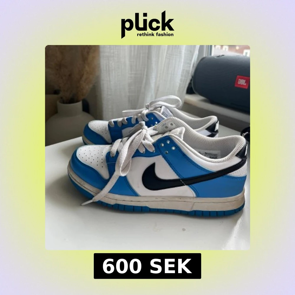Nike Dunk Low sneakers i fräscha blå och vita färger. Använda ett par gånger.