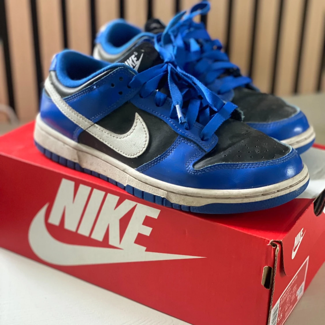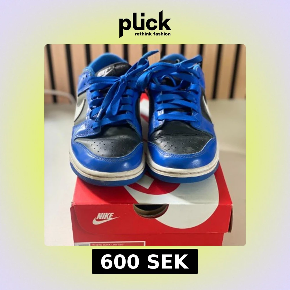 Nike Dunk Low ESS WMNS “Game Royal / Black / White” Storlek: US 7 / EU 38 (24 cm) Snygga och stilrena Dunks i blått, svart och vitt. Använda men i bra skick – originalkartong ingår! Perfekta för dig som vill ha ett clean sneaker-par till våren.