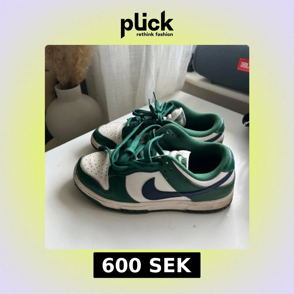 Nike Dunk Low sneakers i vitt och grönt. Är använda ett par gånger men i bra skick.