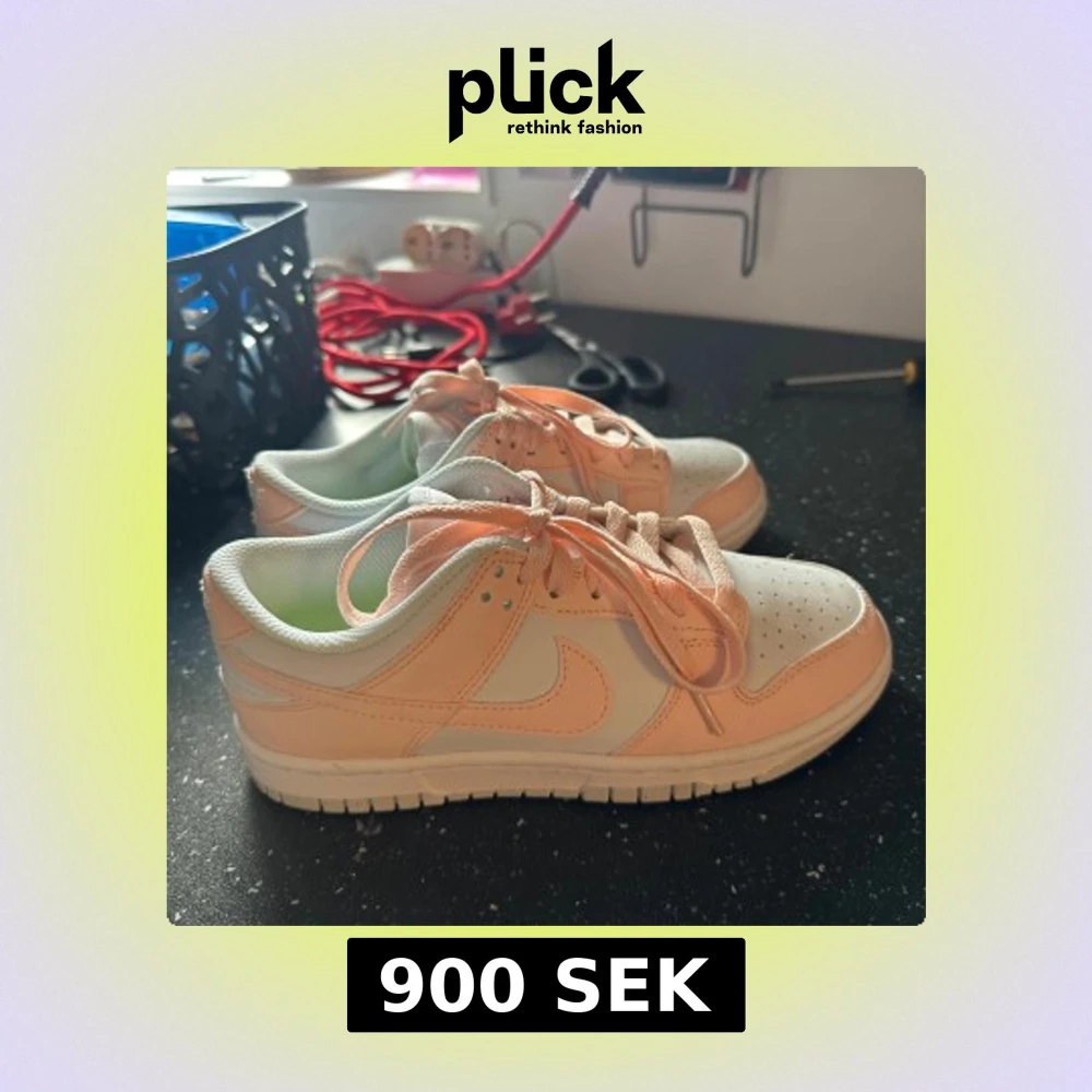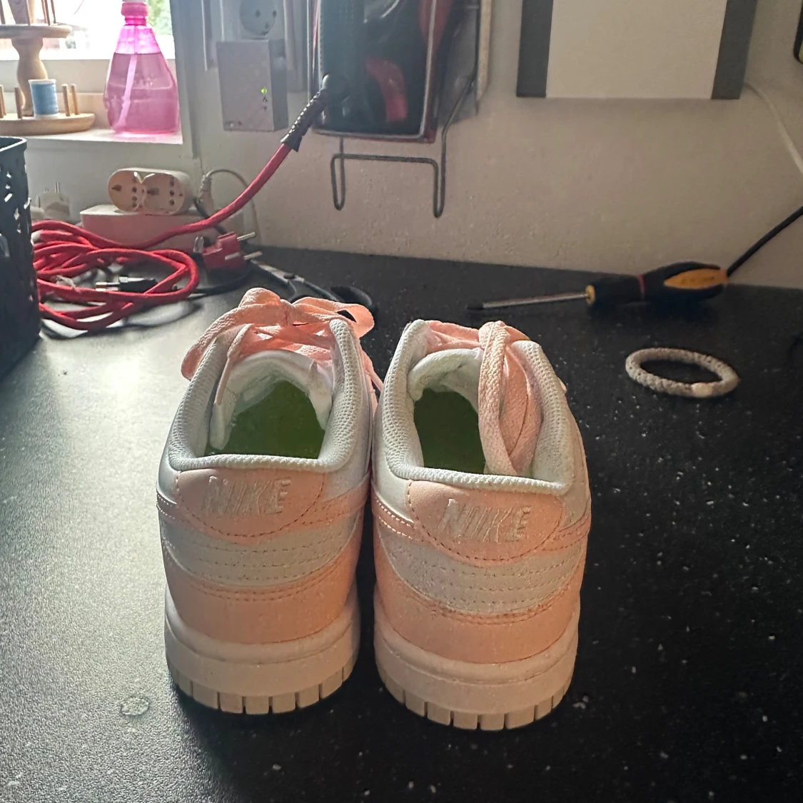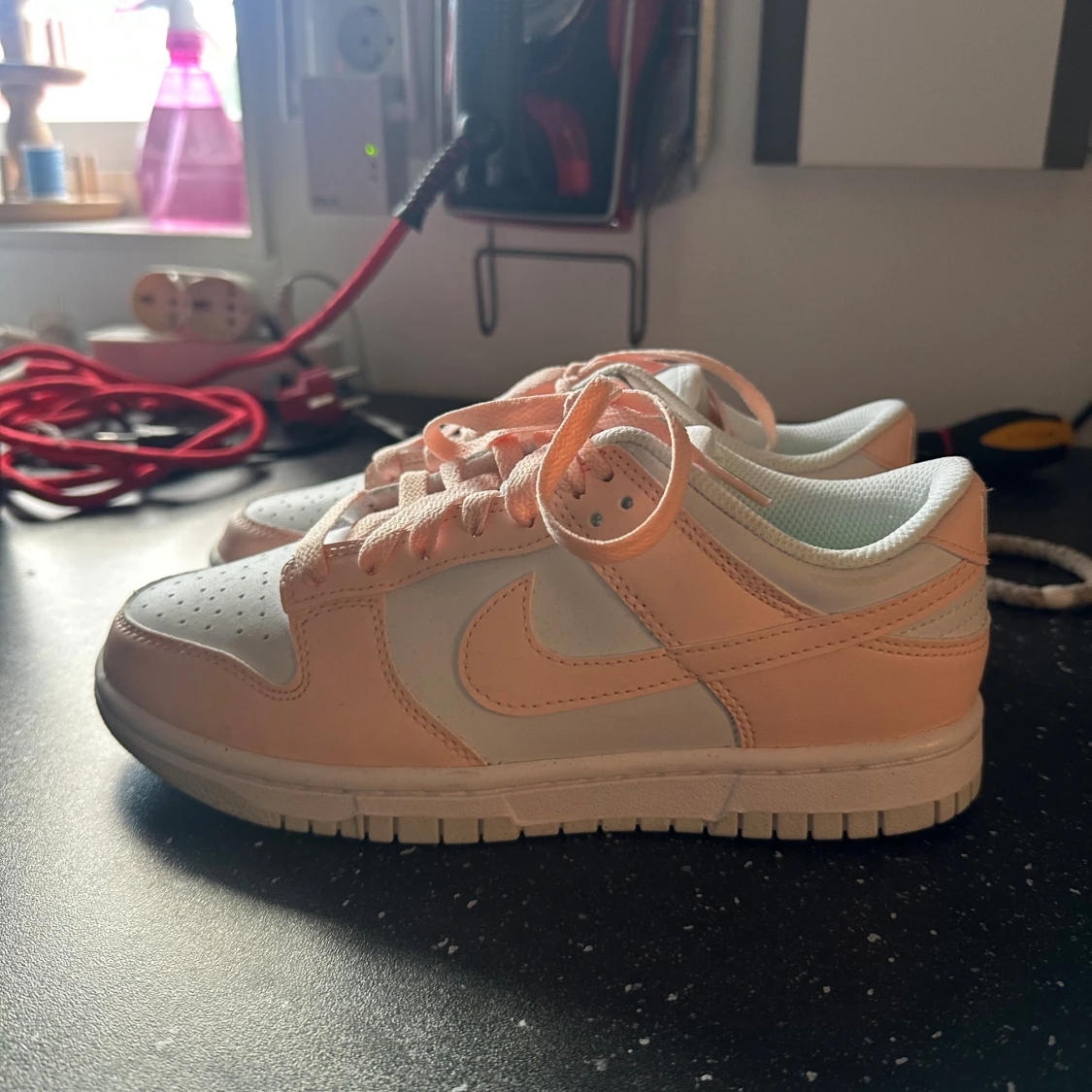 Säljer ett par Nike Dunk Low sneakers i en fräsch kombo av ljusrosa och vitt. Bara provade