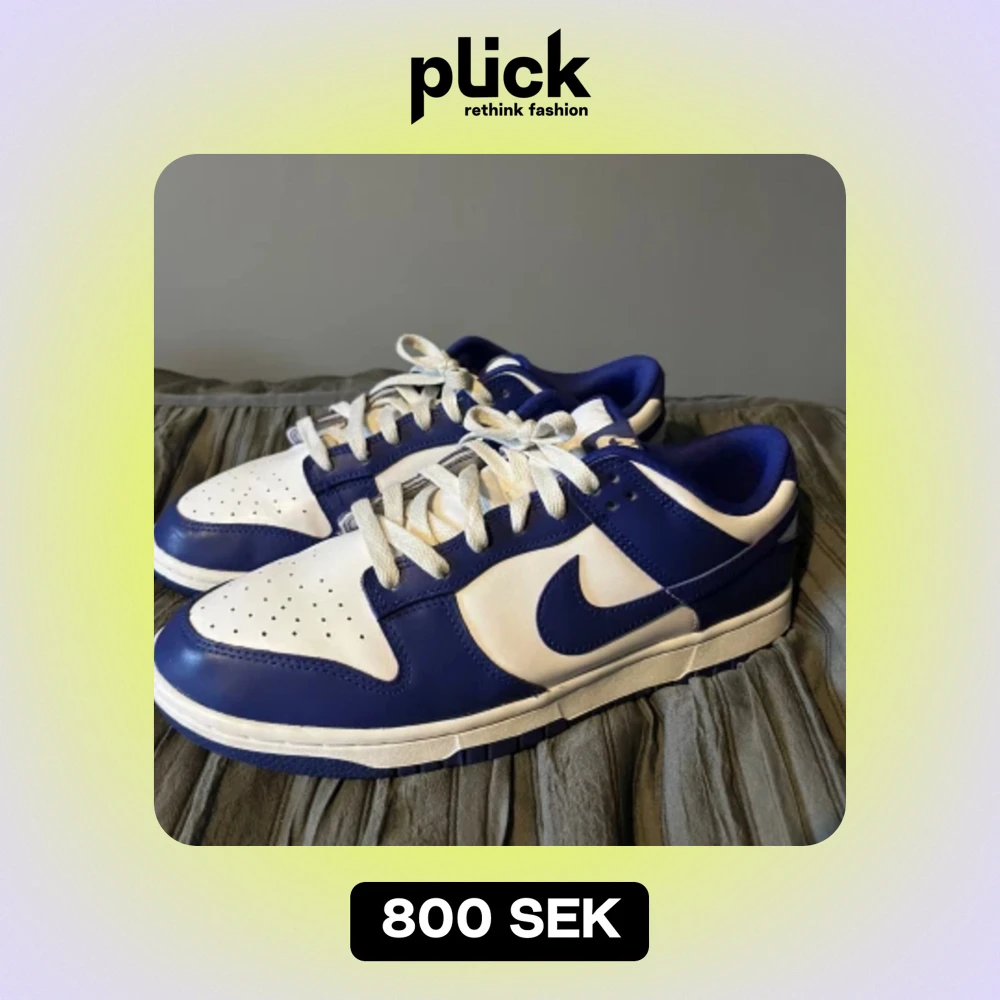 Tjena, säljer nu mina blå/vita dunks som är i väldigt bra skick. Storlek 43, nypris 1500kr. Pris kan diskuteras