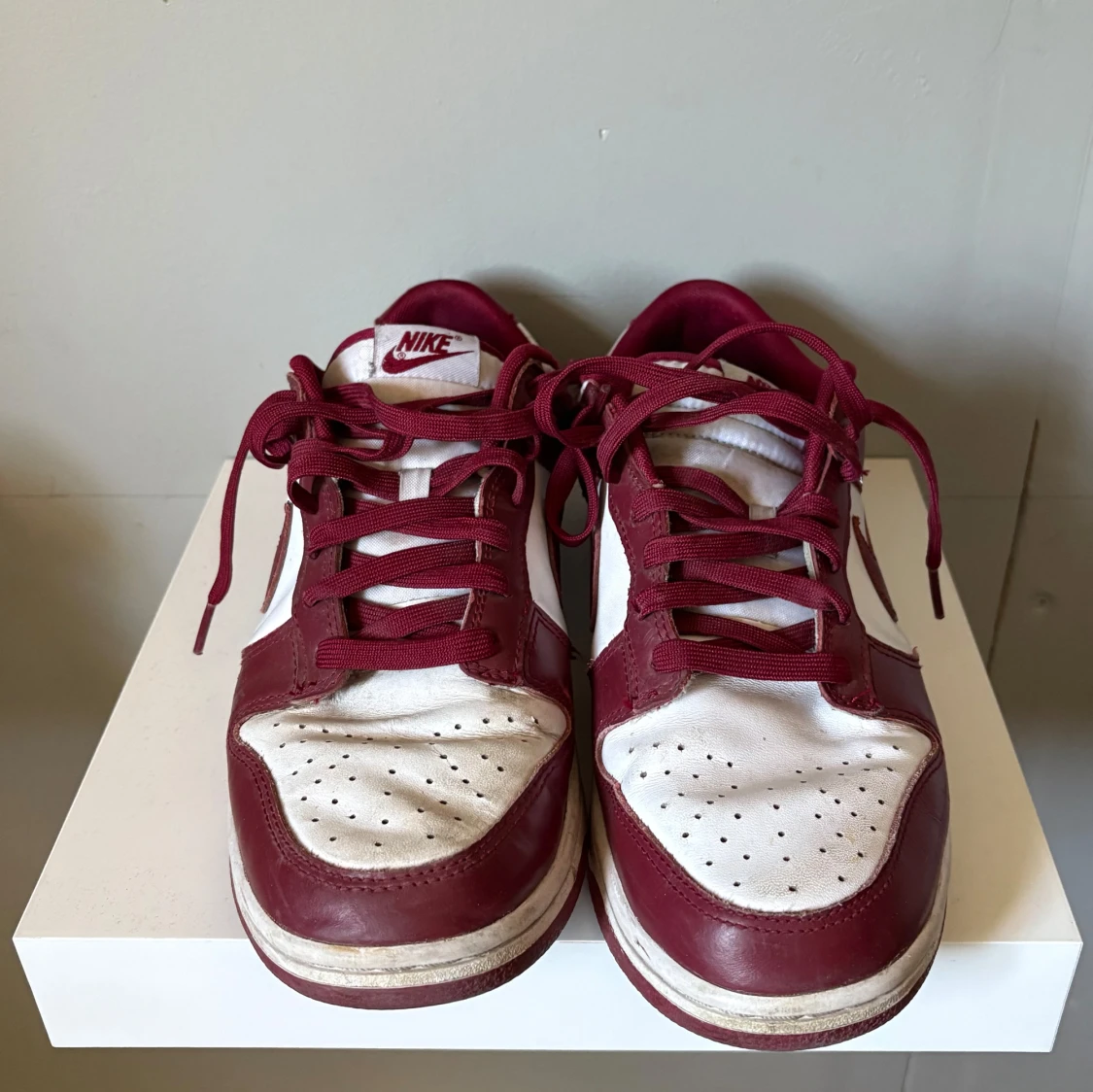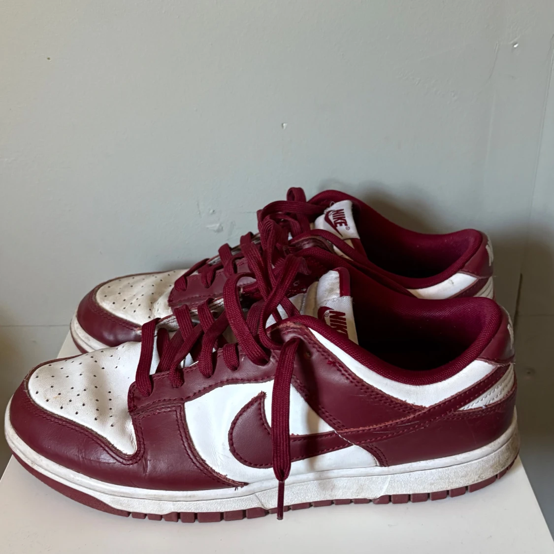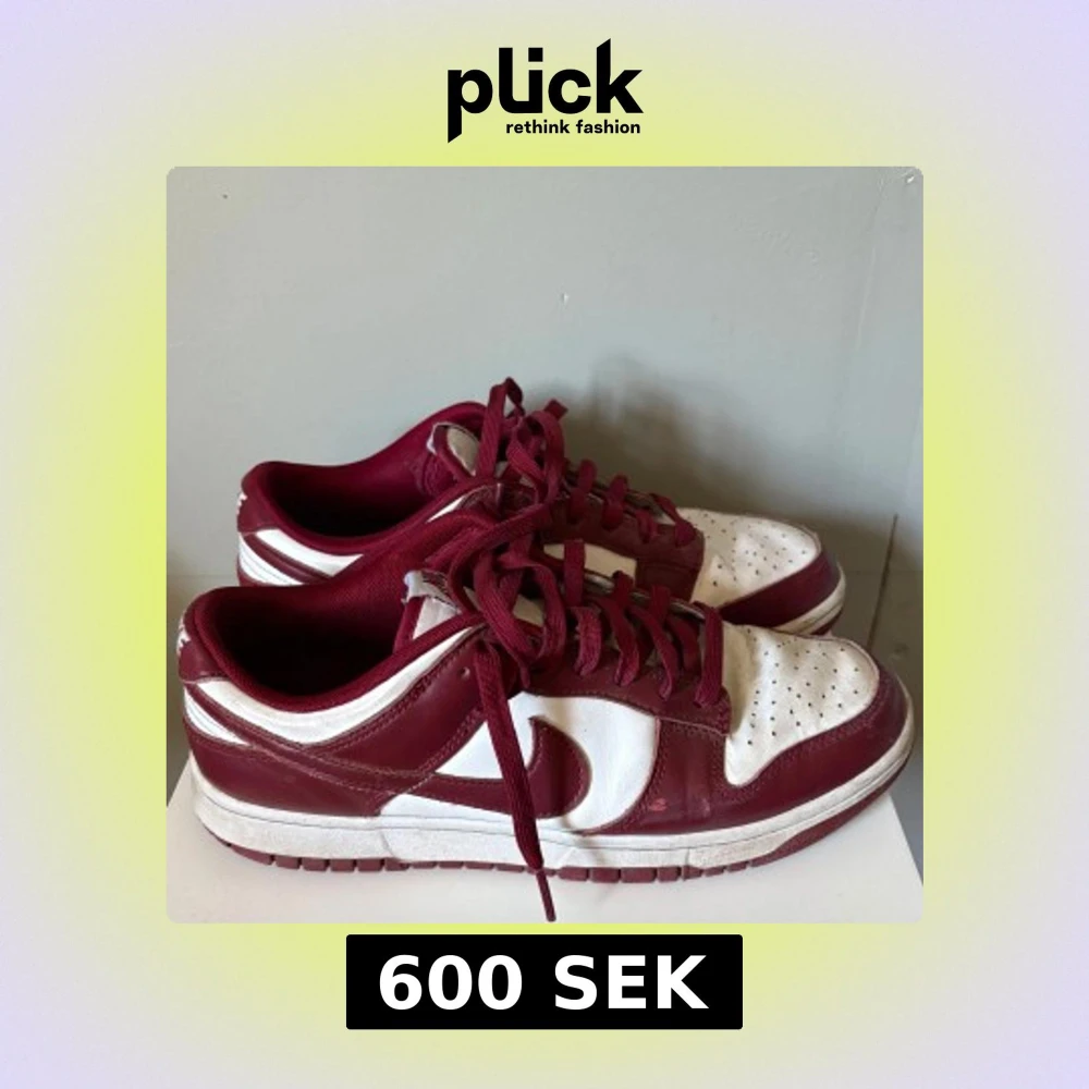 Nike Dunk Low sneakers i rött och vitt med klassisk låg siluett. Skorna har röd skinnpanel, vit tåbox och sidor, samt röda snören och yttersula. Perforerad tå för extra ventilation och ikonisk Swoosh-logga på sidorna. Perfekta för dig som gillar streetstyle. Box och kvitto finns självklart bara skriva om ni har frågor