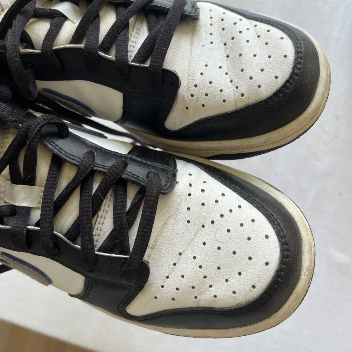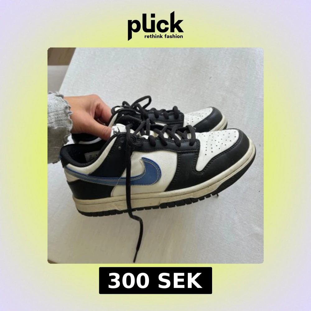 Nike Dunk Low sneakers i svart och vitt med blå swoosh. Klassisk siluett med svart snörning, perforerad tå och robust gummisula. Ovandel i skinn och syntet, perfekt för dig som gillar streetstyle och vill sticka ut med en ikonisk modell.