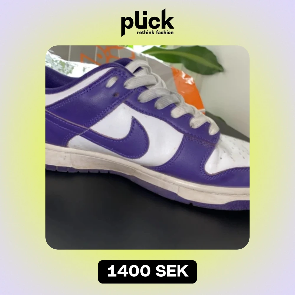 Lila Nike dunks i storlek 42. De är i använt skick men har inga skador