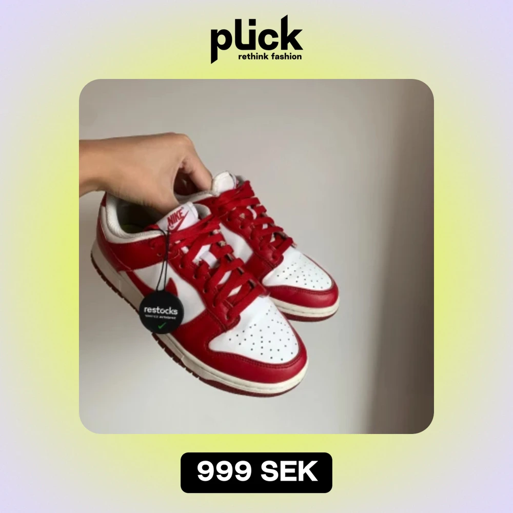 Röd/vita dunks, storlek 39, köpta hos RESTOCKS Använda väldigt sparsamt, inga defekter förutom en märke i fotsulan som saknas Hemsidan verkar vara nedlagd men skorna är verifierade som äkta 👟❤️