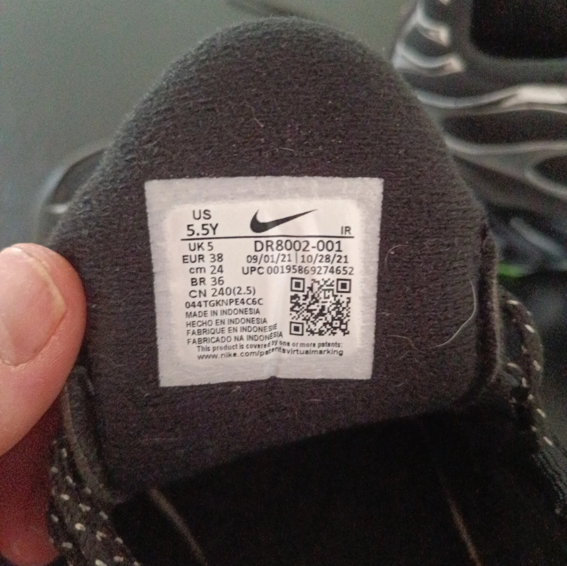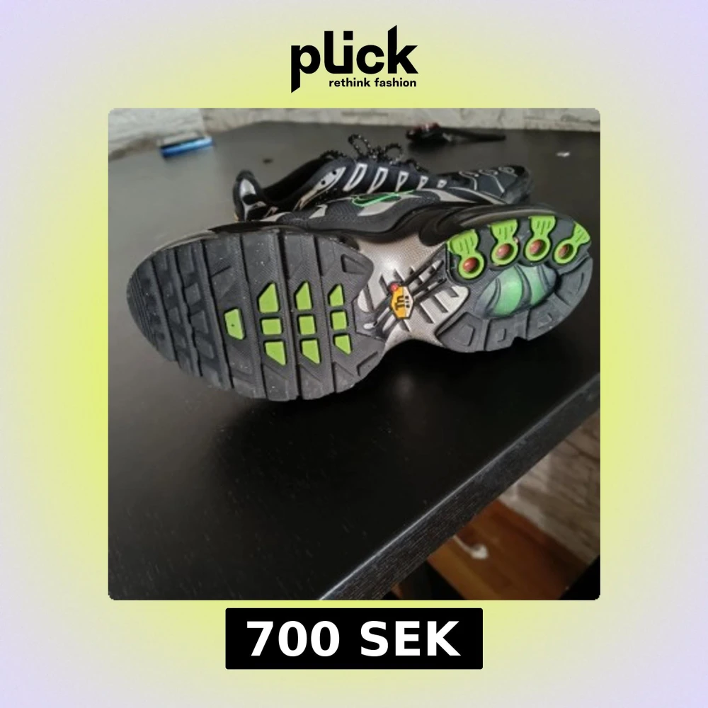 Snygga svarta Nike sneakers med unika gröna detaljer och vågformade mönster. Skorna har en robust sula med bra grepp och klassisk snörning. Perfekta för en sportig look.