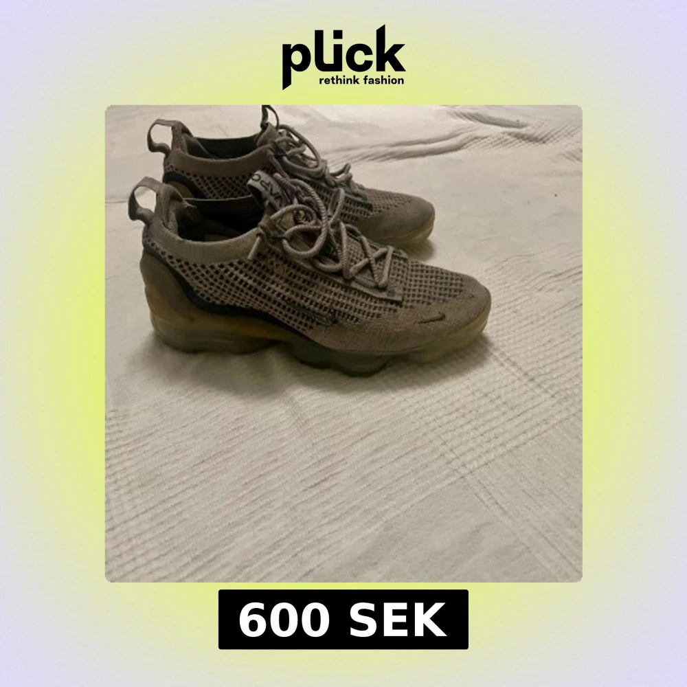 Nike Vapormax Flyknit sneakers i brun och beige ton med transparent, bubblig sula. Ovandelen är stickad i flyknit-material med snörning och rund tå. Snyggt sportig look och cool design med detaljer i svart. Perfekt för dig som gillar streetwear och komfort.