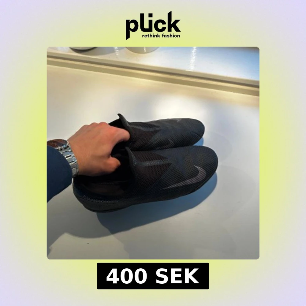 Säljer ett par svarta Nike Phantom Vision Academy TF fotbollsskor i storlek 45. Skorna har en strumpliknande passform, mesh-överdel och diskret Nike-logga på sidan. Perfekta för spel på konstgräs eller grus. Snygg och modern design med låg profil.