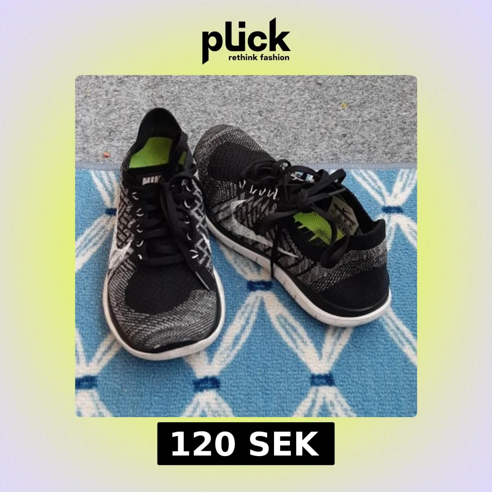 Säljer ett par Nike Flyknit sneakers i svart och vitt med stickad ovandel och vit sula. Skorna har klassisk snörning och en flexibel, lätt design med grönt innerfoder. Perfekta för dig som gillar sportig stil. Skor är mycket lätta och bekväma i bra skick. Finns inga skador eller fel.