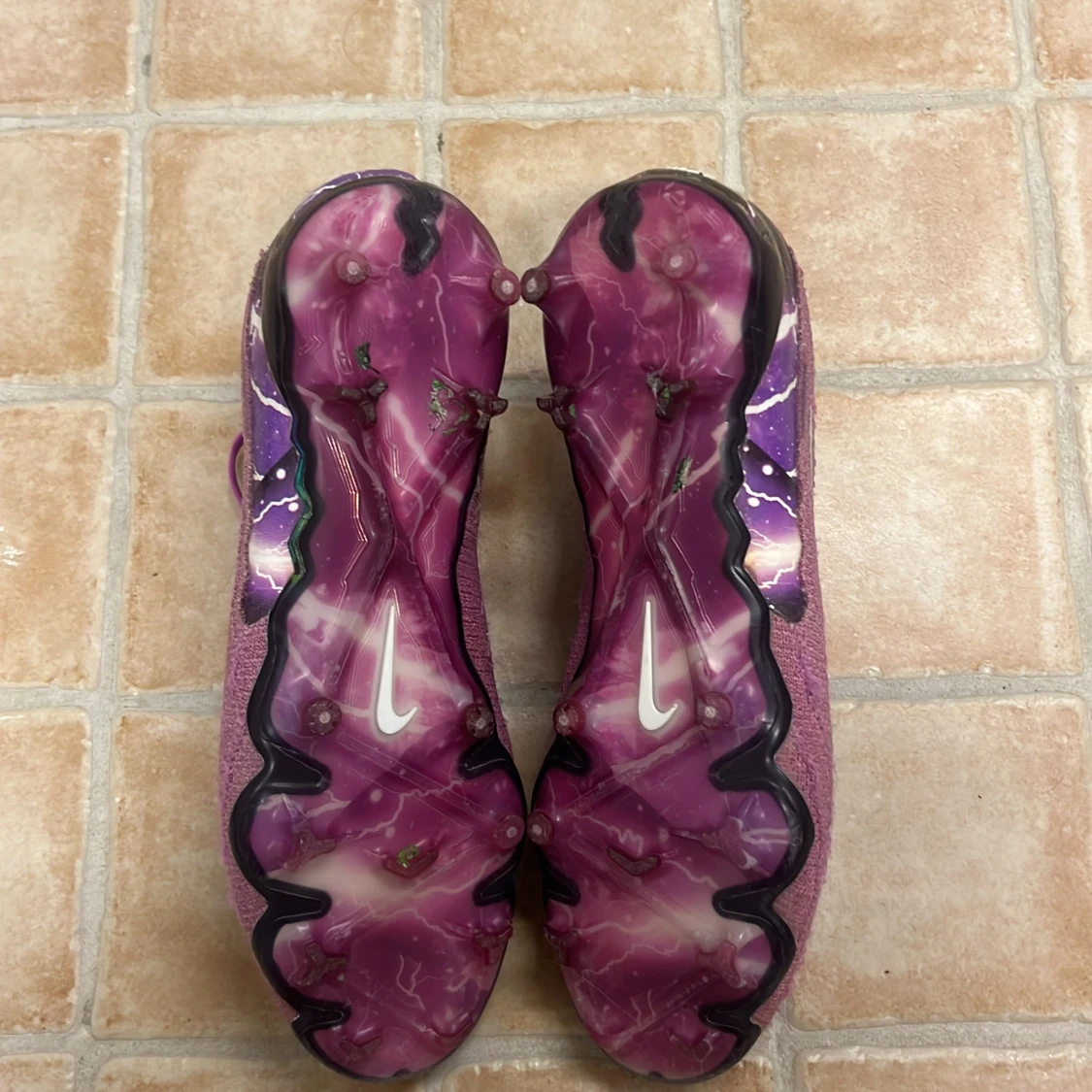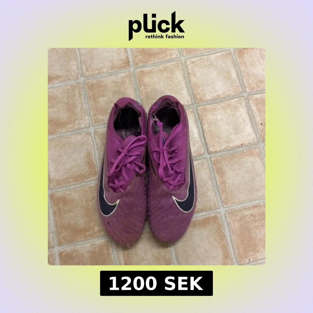Säljer ett par lila Nike fotbollsskor med snörning, är i ett helt okej skick men allt annat är mycket fint. Nypriset är 3200 och eftersom de har tagit några smällar så säljer jag dem för 1200! Storlek är 37,5