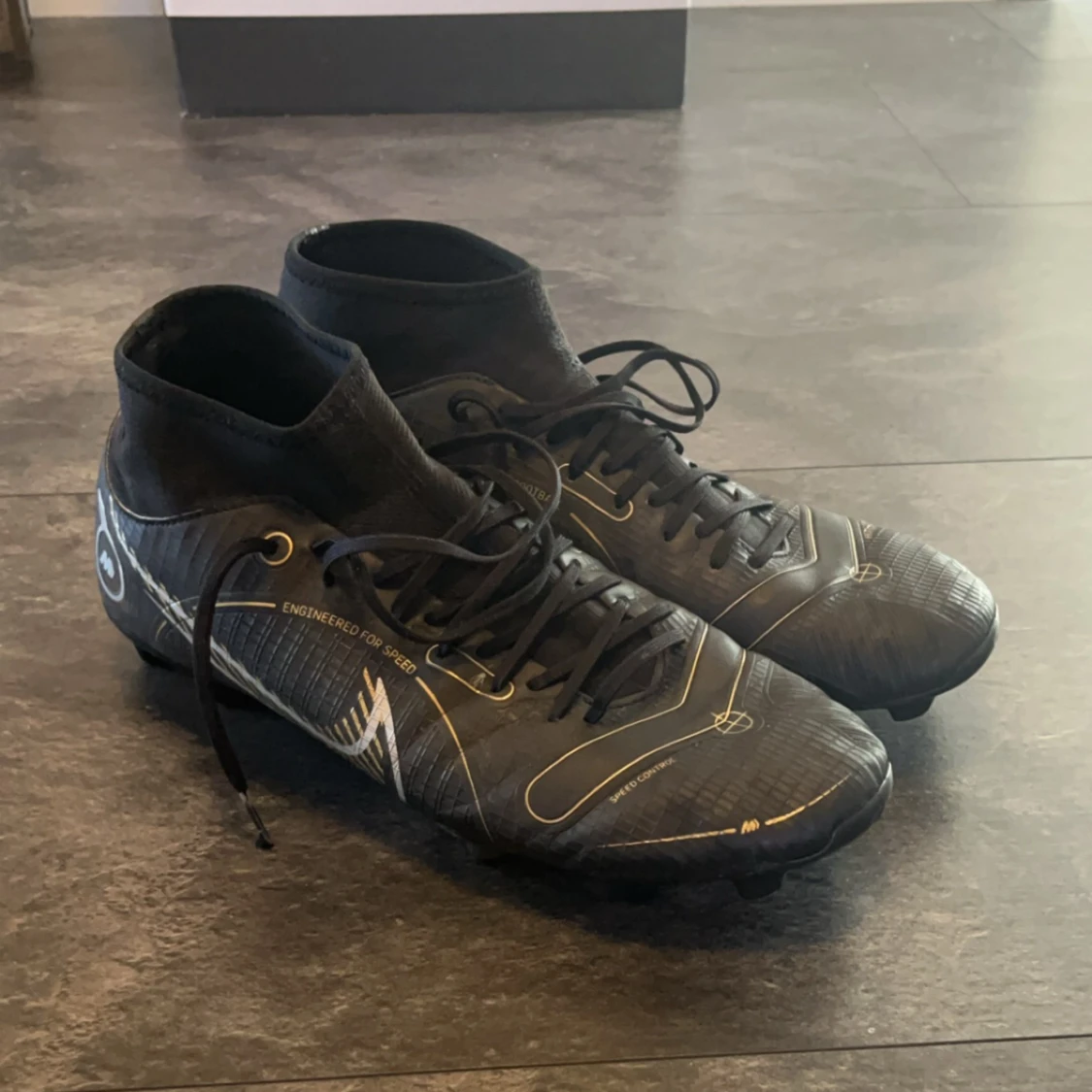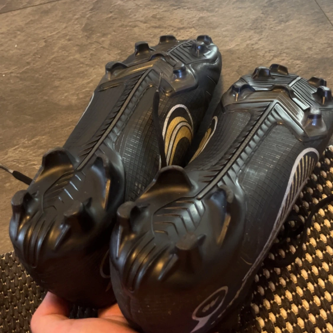Fina svarta Nike fotbollsskor i storlek 45, väldigt fina finns dock en skada (bild 3) pris kan diskuteras och kan även skicka fler bilder vid smidig affär