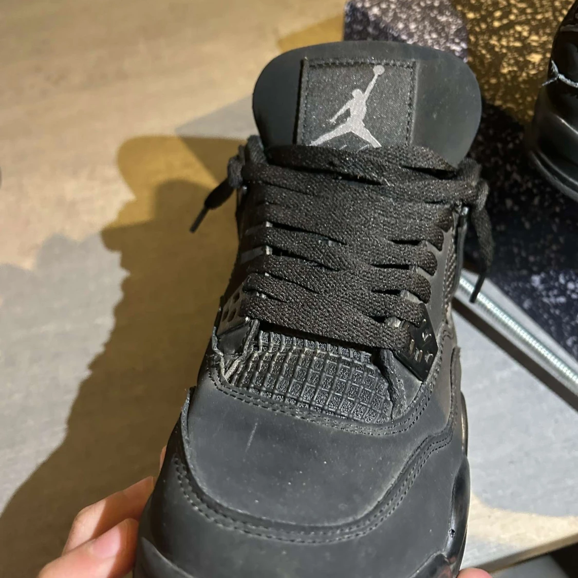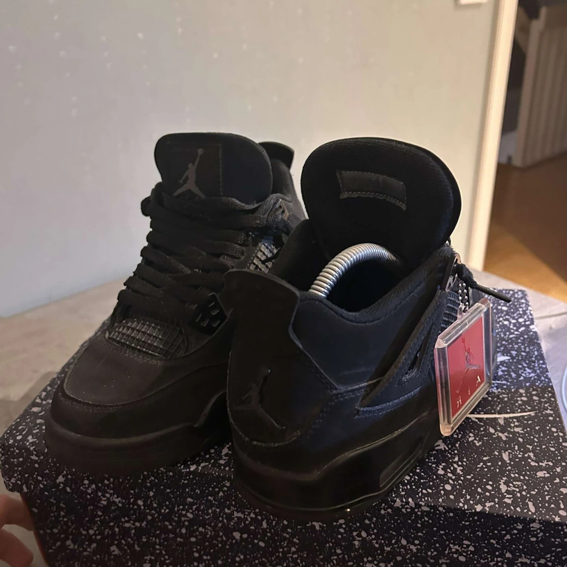 Snygga svarta Nike Air Jordans med klassisk design och ikonisk logga på plösen. Skorna har en stilren look med snörning och är perfekta för sneaker-entusiaster. Levereras i originalkartong.