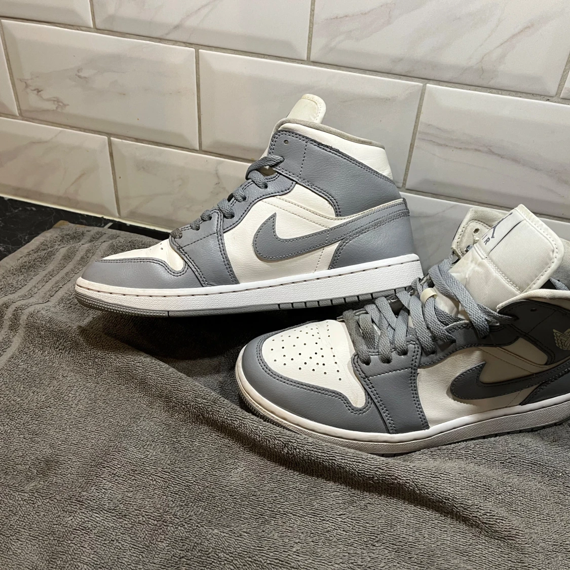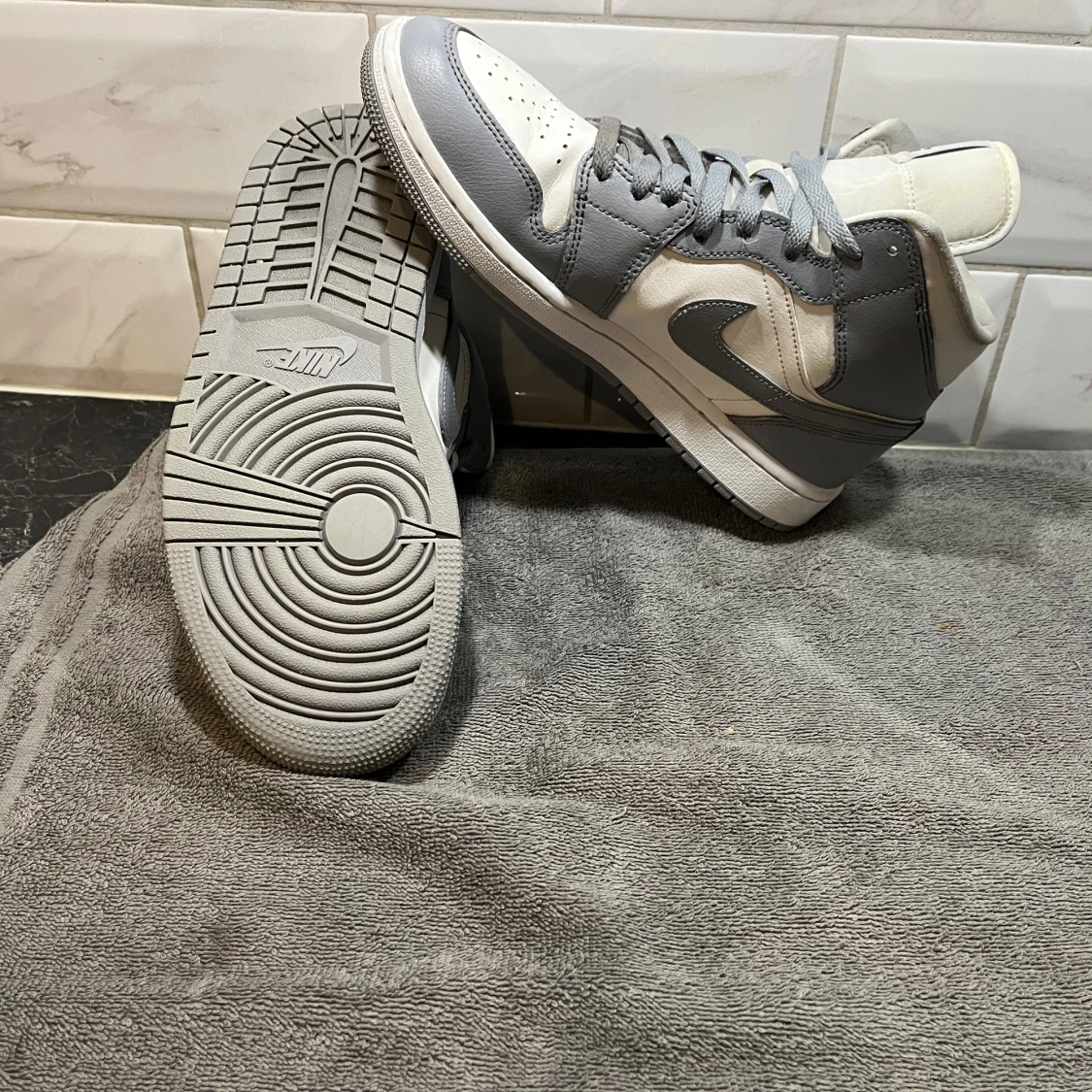 Nike Air Jordans i grått och vitt