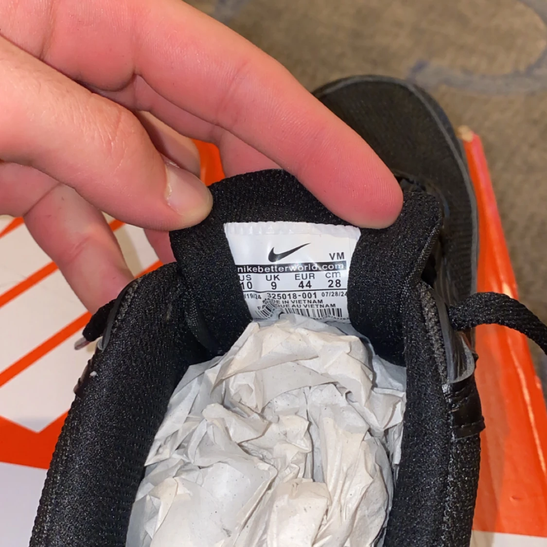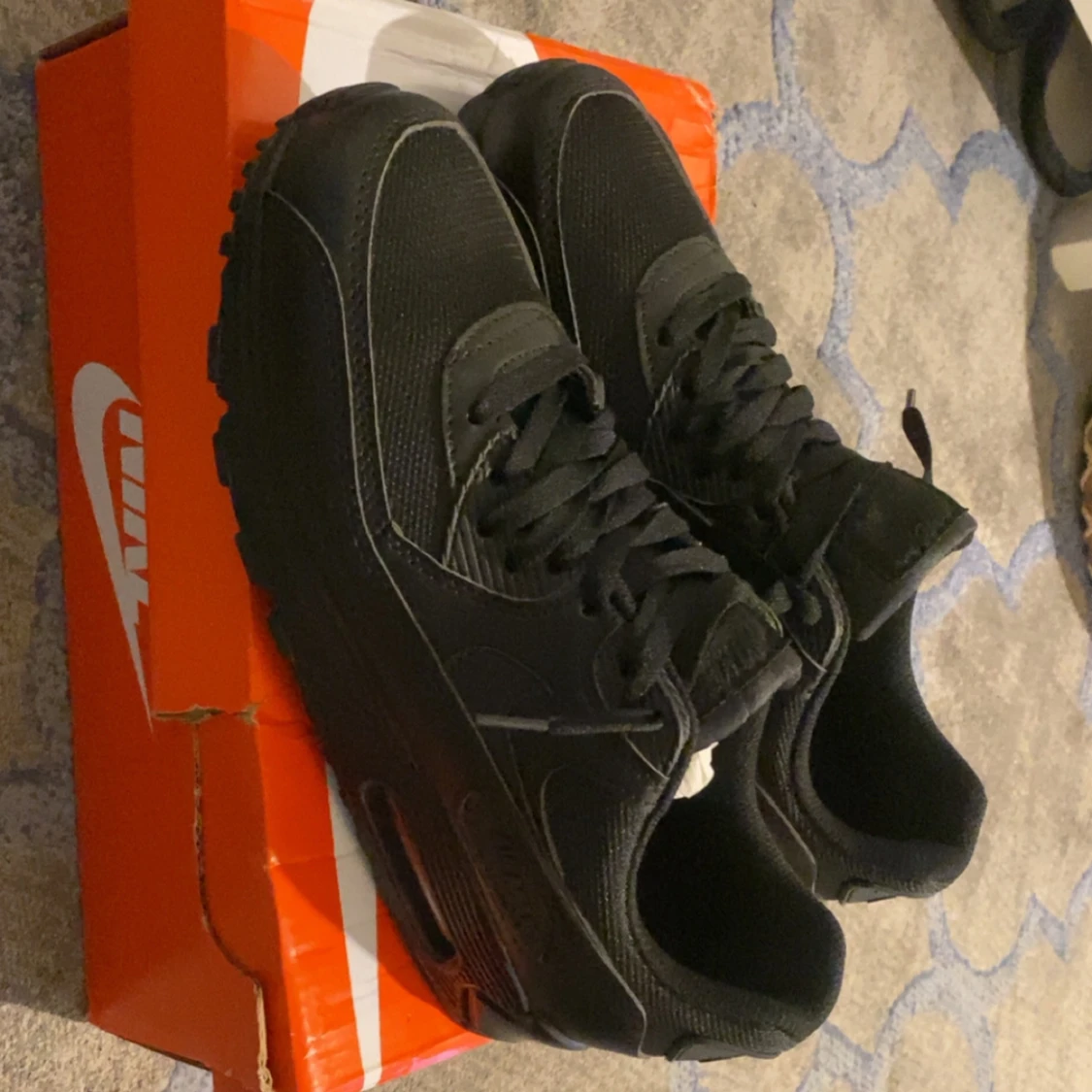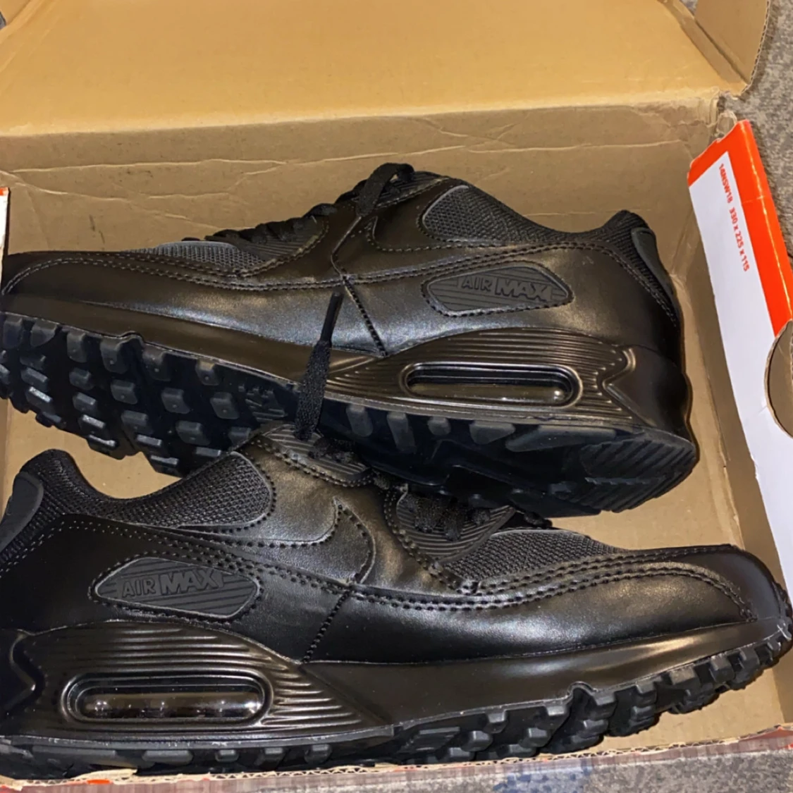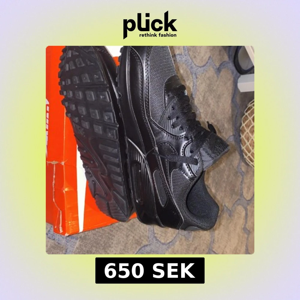 Säljer ett par svarta Nike Air Max med snygg design och bekväm passform. Skorna har en klassisk siluett med snörning och en robust sula för extra komfort. Perfekta för både vardag och träning.