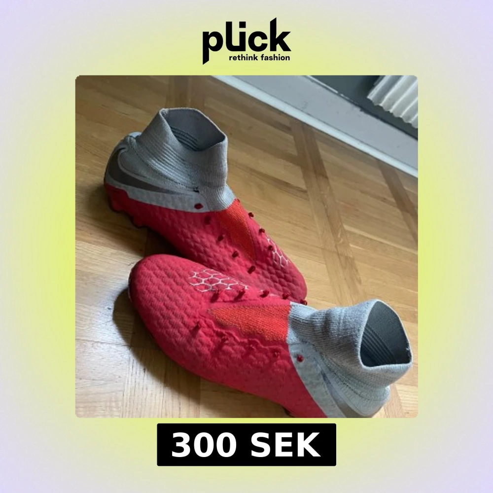 Säljer ett par Nike fotbollsskor i rött med grått högt skaft och silverfärgade detaljer. Skorna har snörning, mönstrad ovandel och är tillverkade i syntetmaterial. Perfekta för dig som vill sticka ut på planen med snygg design och bra passform.
