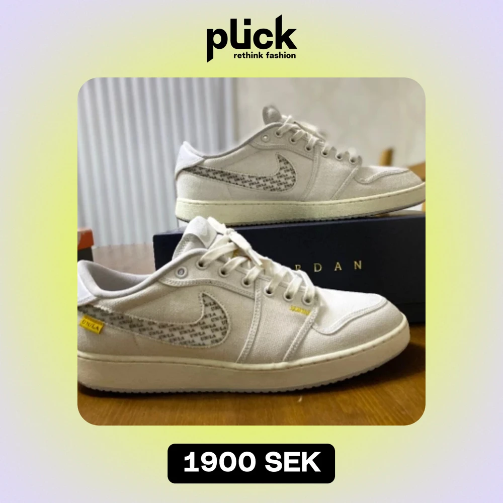 Jordan 1 Retro AJKO Low SP Union White Canvas i storlek 47,5(passar storlek 47). Originellt köpta från StockX för 2900 kr. Flera olika unika kombinationer med 3 olika alternativ på Nike loggan och 2 olika färger på snöret. *Kontakta mig för mer info*