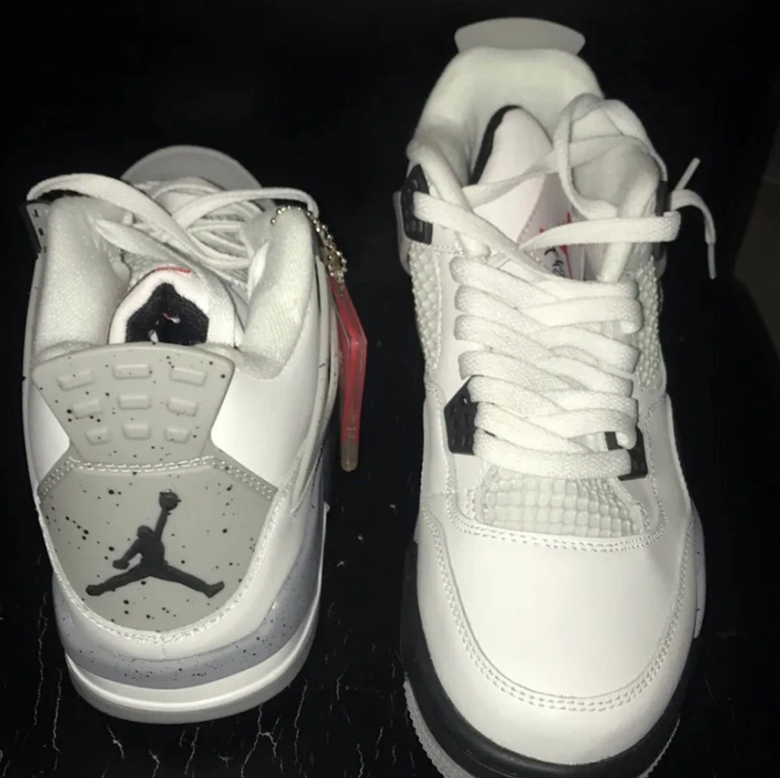 Jordan 4 s (white cement). Storlek 42 passar även 41. Kostar 1000+ frakt 99. Om du vill ha spårbar frakt så kostar det 99kr extra. Kommer utan låda och kvitto, helt oandvända och orörda. AA-kopior. Det går även att mötas upp, vid intresse kontakta via DM❤️(lägger upp annonsen på nytt eftersom det var många oseriösa bud på förra, !!ENDAST SERIÖSA KÖPARE!!)