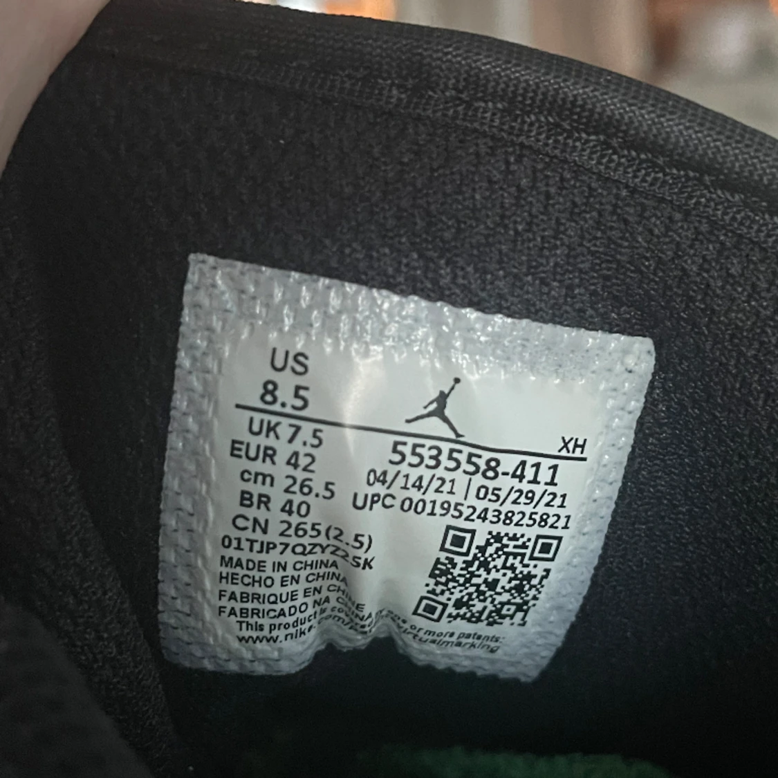 Jordan 1 Dark teal storlek 42. Skorna är använda men i bra skick. Sko kartongen ingår. Pris kan diskuteras. Skriv för fler frågor.