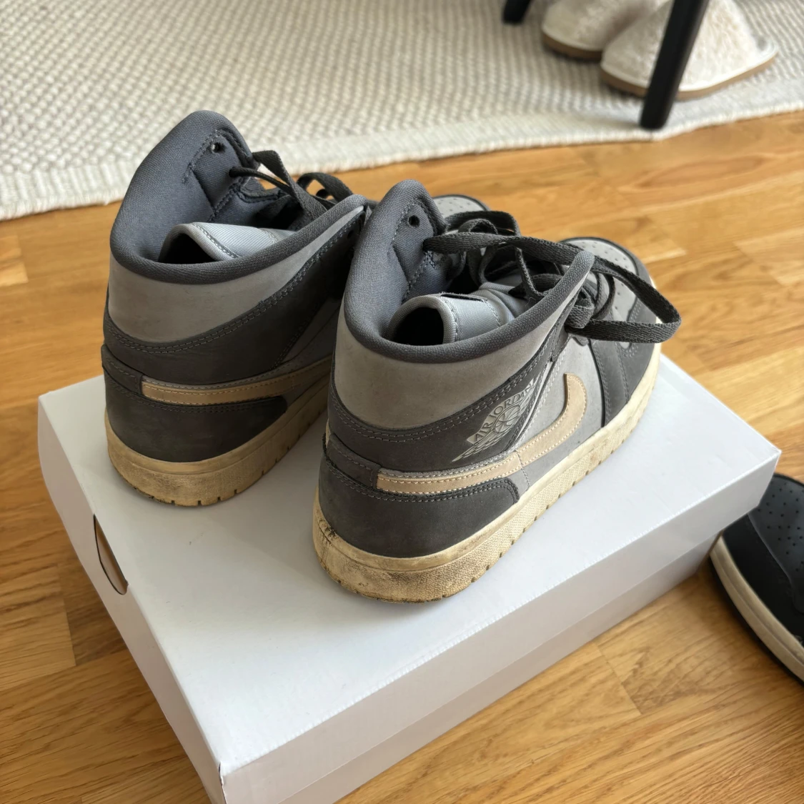 Nike jordans, går att putsa upp lite med en fiberduk och vatten så sulan blir lite senare. Orginalkvitto och kartong medföljer