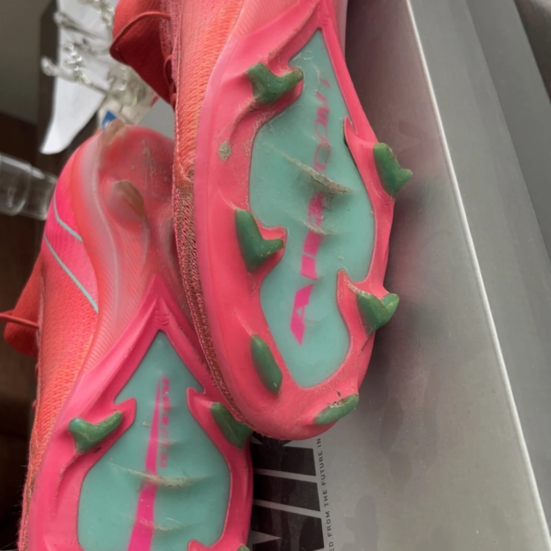 Säljer mina fotbollsskor då jag har andra som används mer. Dom är i bra skick men smutsiga, går såklart att tvätta bort, skorna köptes för ~2600 i februari och har inte vart använda sen början av sommarn. Inga defekter. Pris går att diskutera!