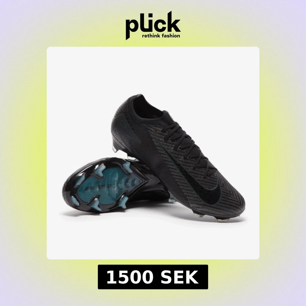 Svarta Nike Mercurial fotbollsskor med låg profil och snörning. Skorna har en slimmad design, syntetiskt material och mönstrad yttersula med dobbar för bra grepp på planen. Swoosh-logga på sidan och diskreta detaljer i mörkgrått. Perfekta för dig som vill ha speed och kontroll. Det är ELITE.