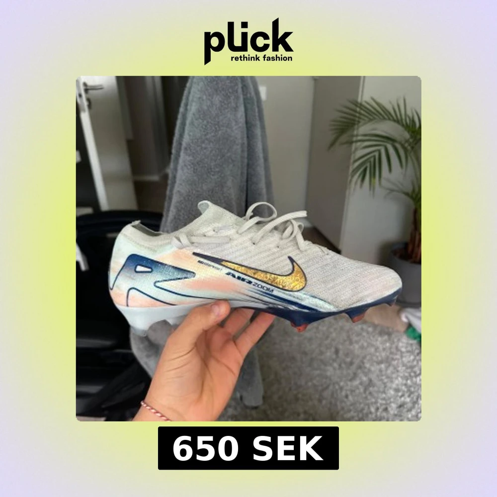 Andvänt skorna ett tag finns ett hål som vissas på bilden och sedan en litwn spricka på botten av sulan därav priset! Box kmr med