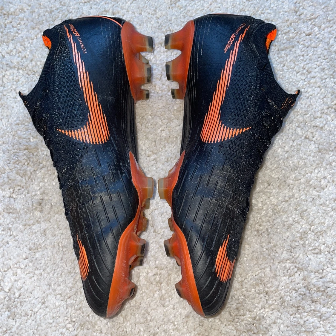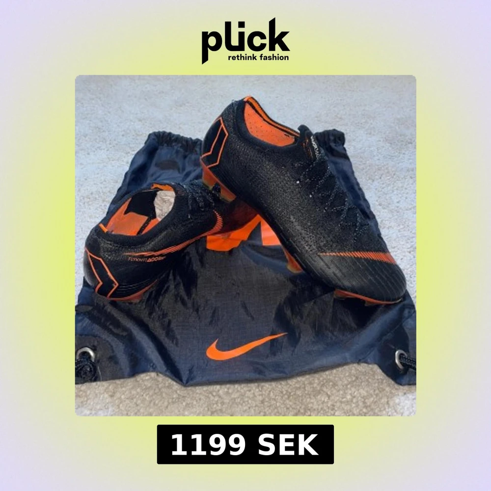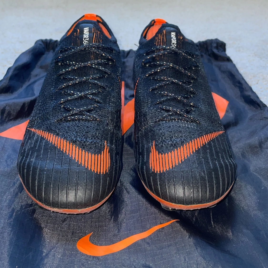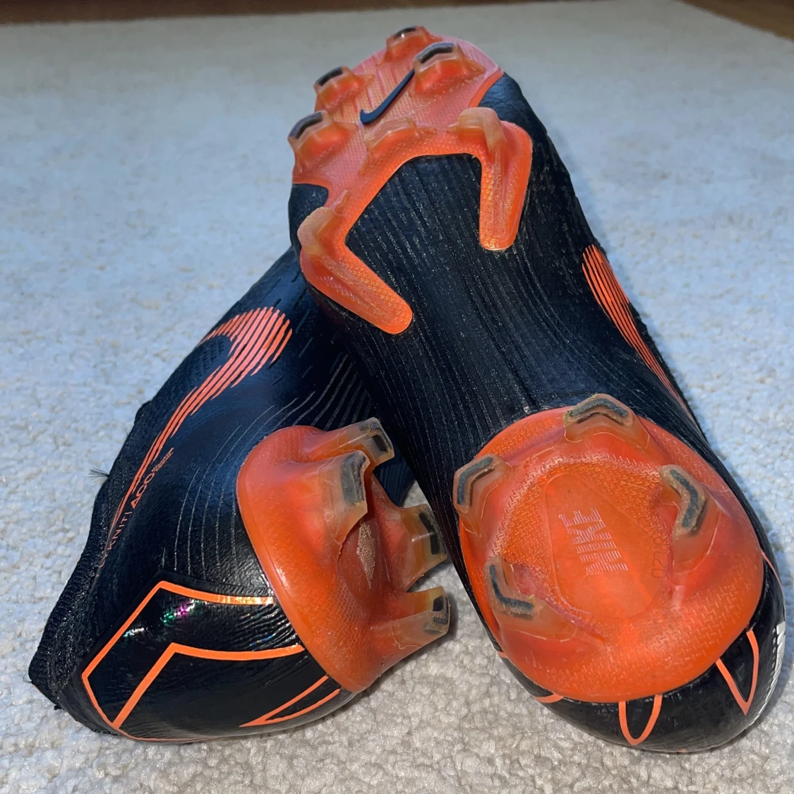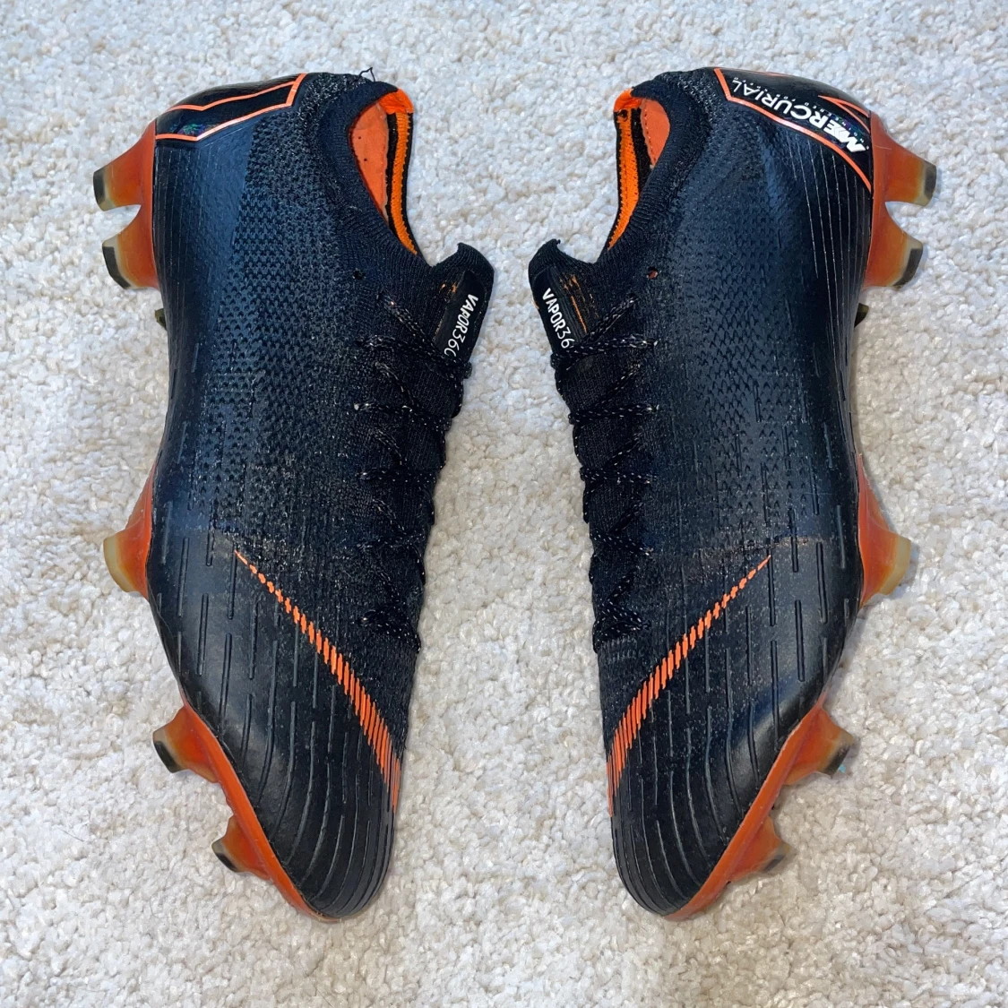 Säljer ett par NIKE MERCURIAL VAPOR 12 ELITE FG - SVART/ORANGE/VIT fotbollsskor. Skorna har en snygg, strömlinjeformad design med Flyknit-överdel, snörning och tydliga Nike-loggor. Yttersulan är orange och skon är perfekt för dig som vill ha lättviktsskor med grym känsla på planen.