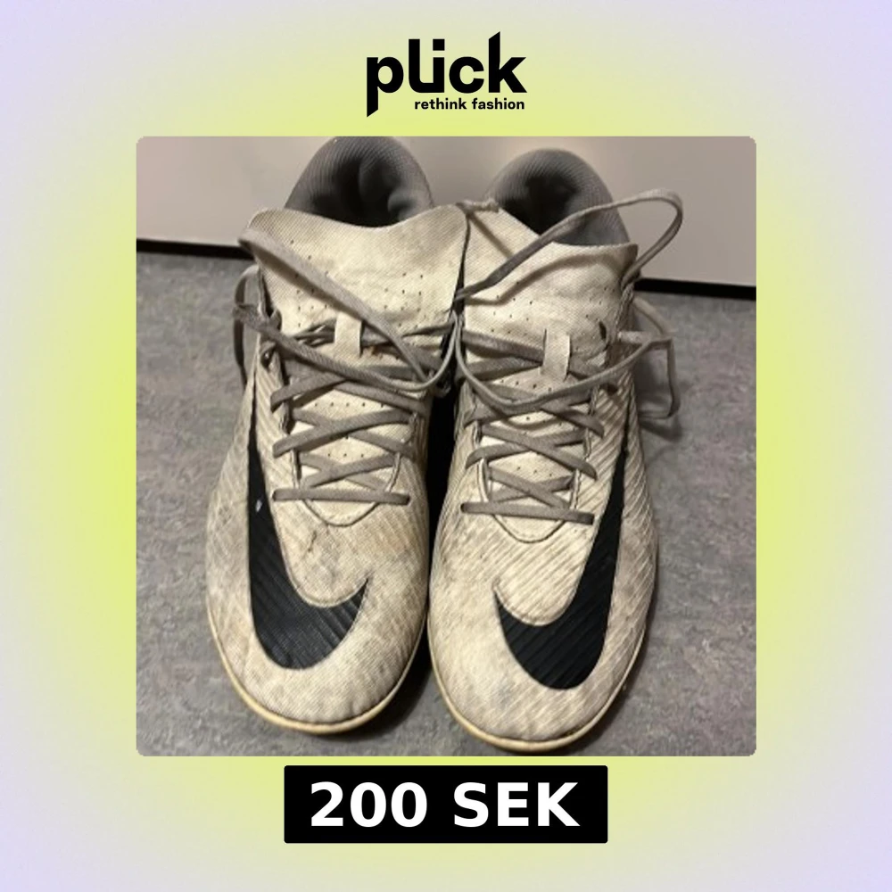 Nike Mercurial fotbollsskor i vit och svart med stor Nike-logga på sidan och hälen. Skorna har snörning och en låg profil, designade för snabbhet på planen. Ovandelen är i syntetmaterial med mönstrad yta och platt sula med dobbar för bra grepp. Perfekt för dig som vill sticka ut på matchen.