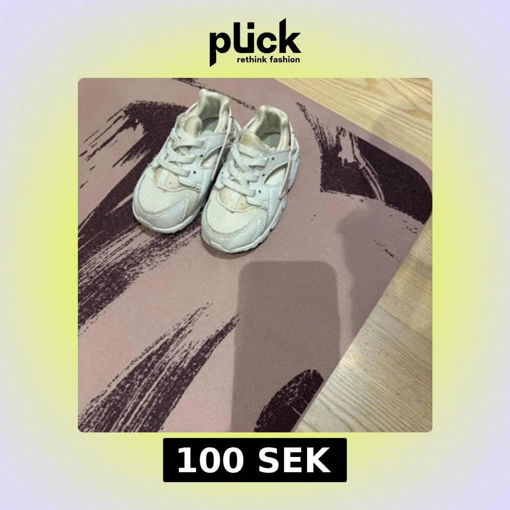 Säljer ett par vita Nike sneakers för barn med cool design och detaljer i mesh och syntet. Skorna har snörning och en chunky sula som ger en sportig vibe. Perfekta för dig som gillar streetstyle och vill ha något bekvämt och snyggt på fötterna.