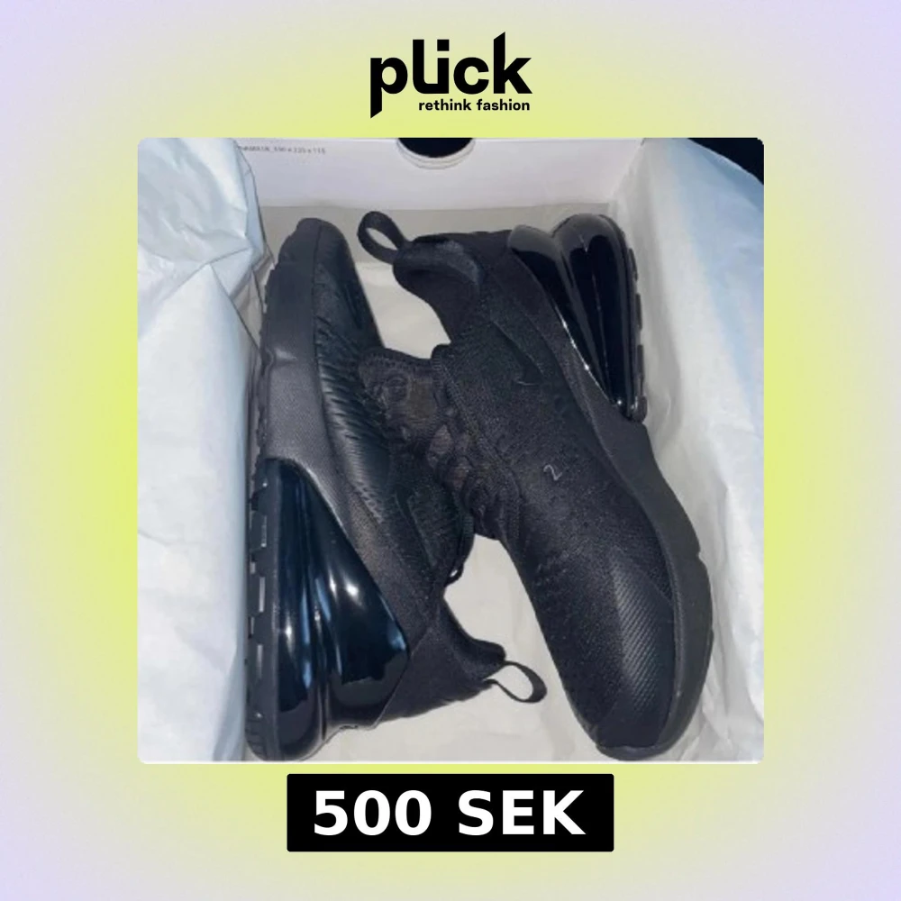 Nike Air Max 270 sneakers i helsvart färg med stor synlig Air-enhet i hälen. Ovandelen är gjord i mesh och syntet, med snörning och rund tå. Snygg och sportig look som passar perfekt till streetwear. Levereras i originalkartong.
