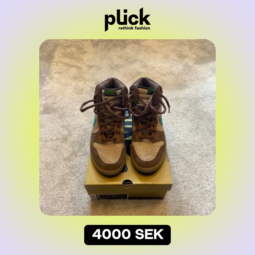 Ett par väldigt sällsynta Nike Dunk high Wood deck från 2007. Väldigt sparsamt använda och i bra skick. Börjar bli glapp mellan sulan och skon men det fixas enkelt hos en skomakare eller hemma med rätt sko lim. Skick 9/10 med tanke på ålder. OG