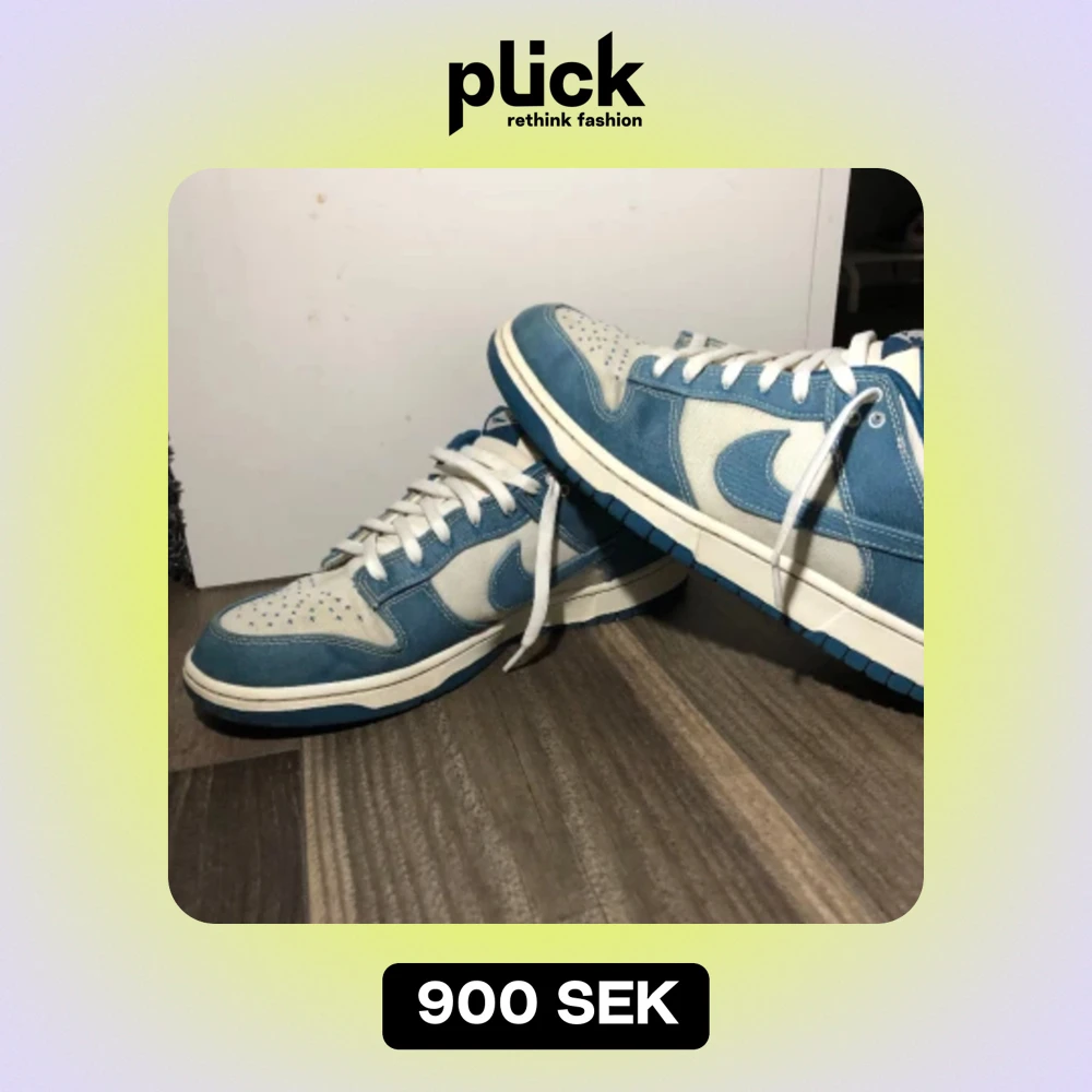Säljer nu ett par Nike dunk Industrial Blue Sashiko. Lite andvända som ni ser men inget som syns. Väldigt bra skick och passar perfekt till tex sommaren.