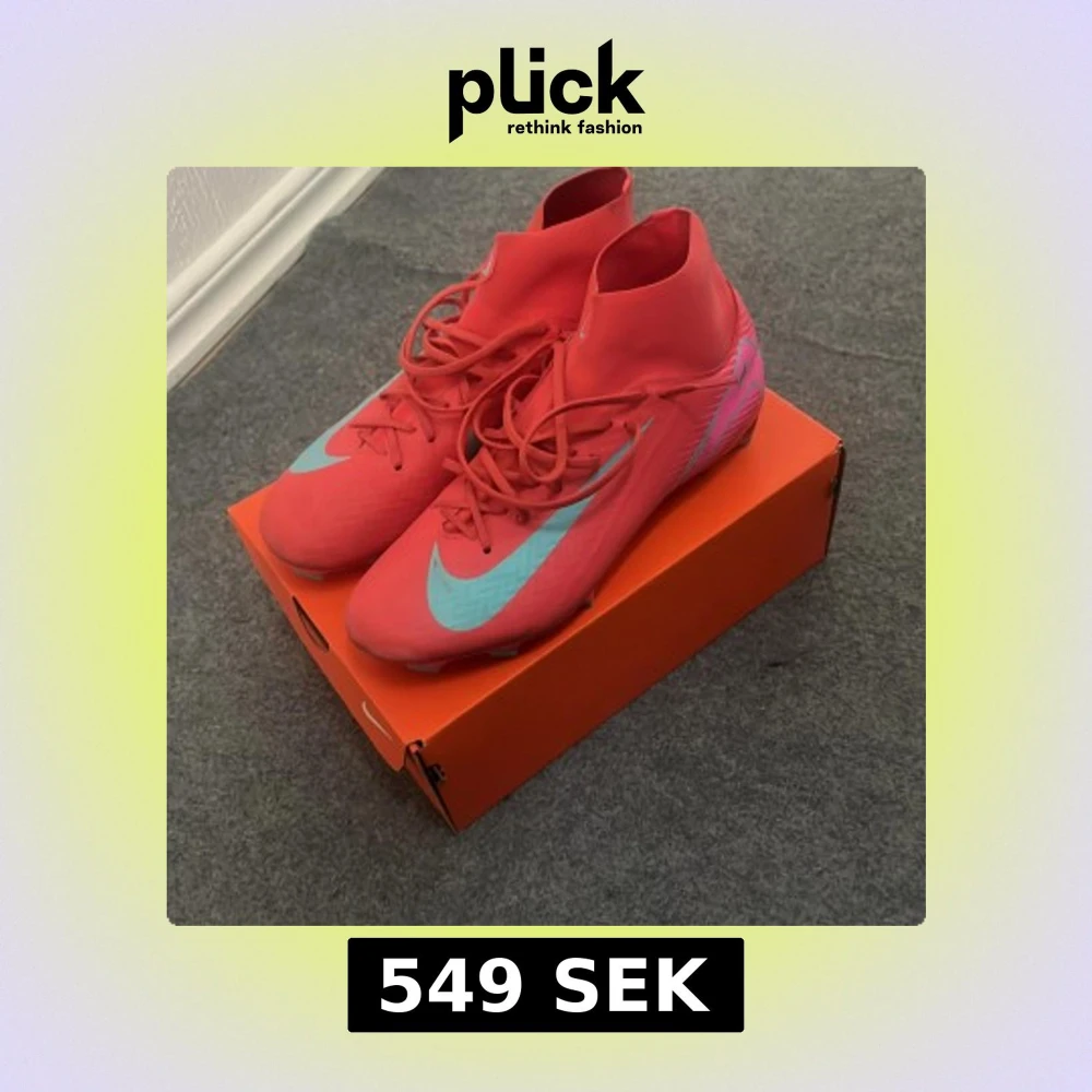 Nike Superfly 10 fotbollsskor i en riktigt snygg orange färg med ljusgröna detaljer och stor Swoosh på sidan. Skorna har snörning, högre skaft och platt sula med dobbar för bra grepp på planen. Perfekta för dig som vill sticka ut på matchen!