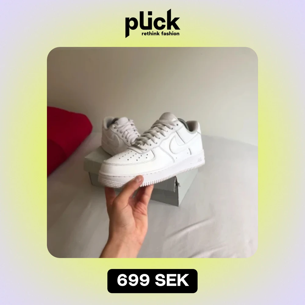 Tjena, säljer dessa nyskick airforce. Använda 2-3 gånger, då de är lite stora. Riktigt stilrena, och perfekta till sommarn. Alltid använda med crease skydd. Inga defekter eller skador och är i princip nya. Vid frågor kontakta gärna!💫