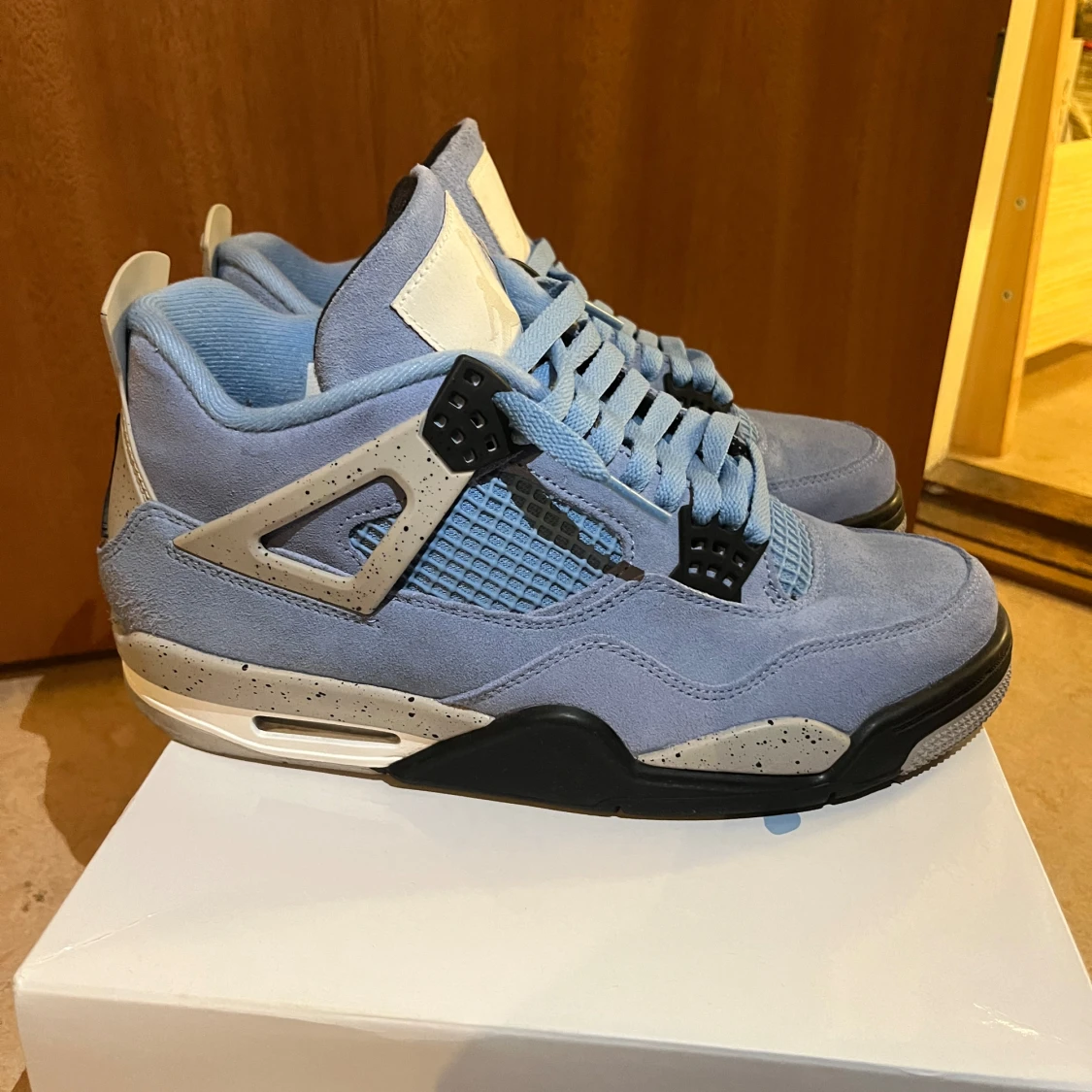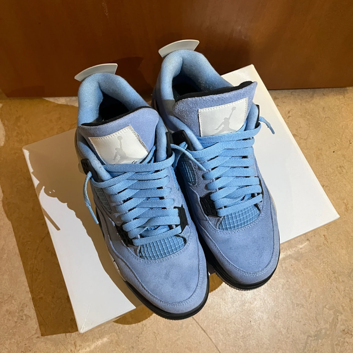 Säljer mina Jordan 4 University Blue. Strl 41! Dem är i 10/10 skick! Andvänt dem 3 gånger. OBS tagen är bortklippt. Pris kan diskuteras vid snabb affär! Kvitto från (Nike) hemsida och original box medföljer!!