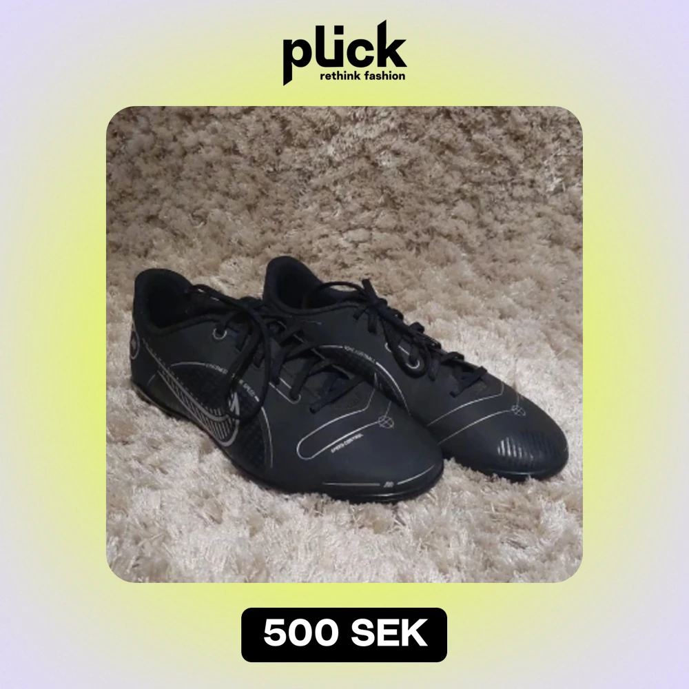 Feta svarta och silvriga nike mercurial fotbollskor. De är använda en eller två gånger eftersom jag slutade strax efter. Dobbarna är lite skrapade. Väldigt lätta. Priset kan sänkas några hundra om man är snabb.