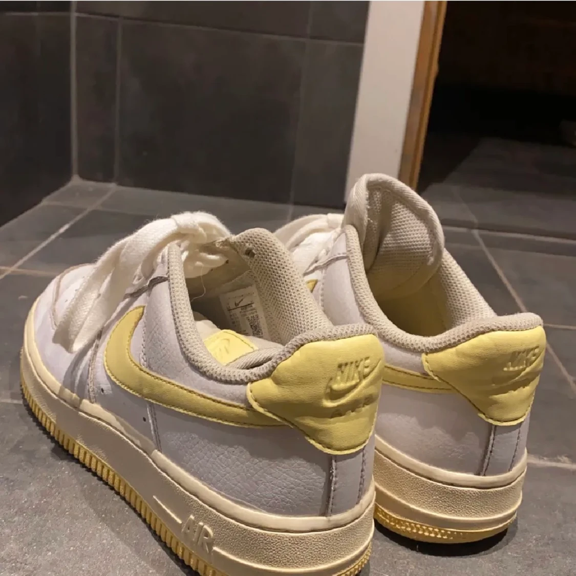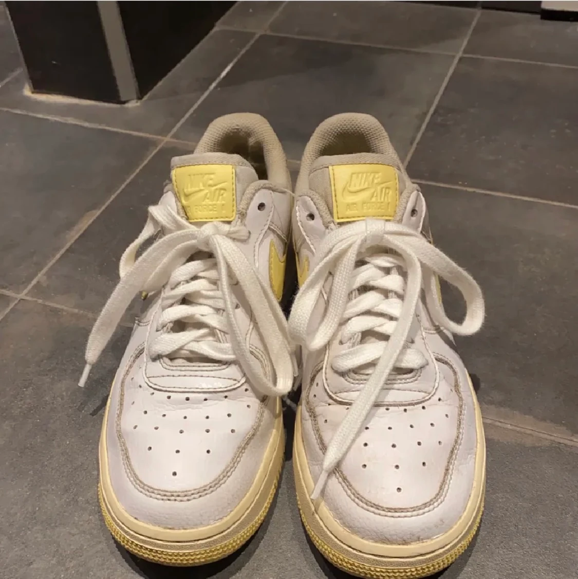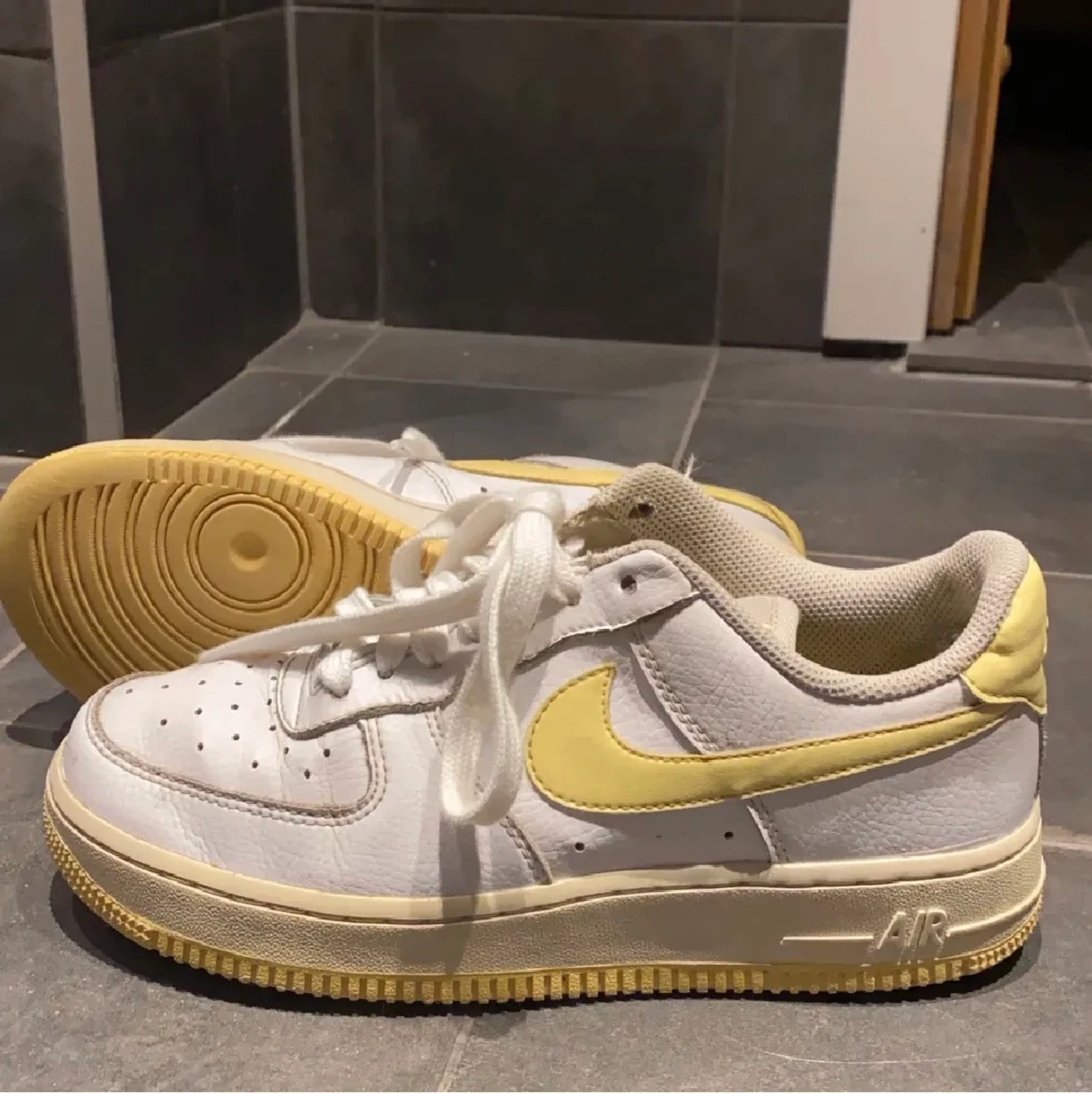 Snygga vit/gula nike air force 1. Använda men i fint skick. Stl 37,5. 600kr. Köpare står för frakt