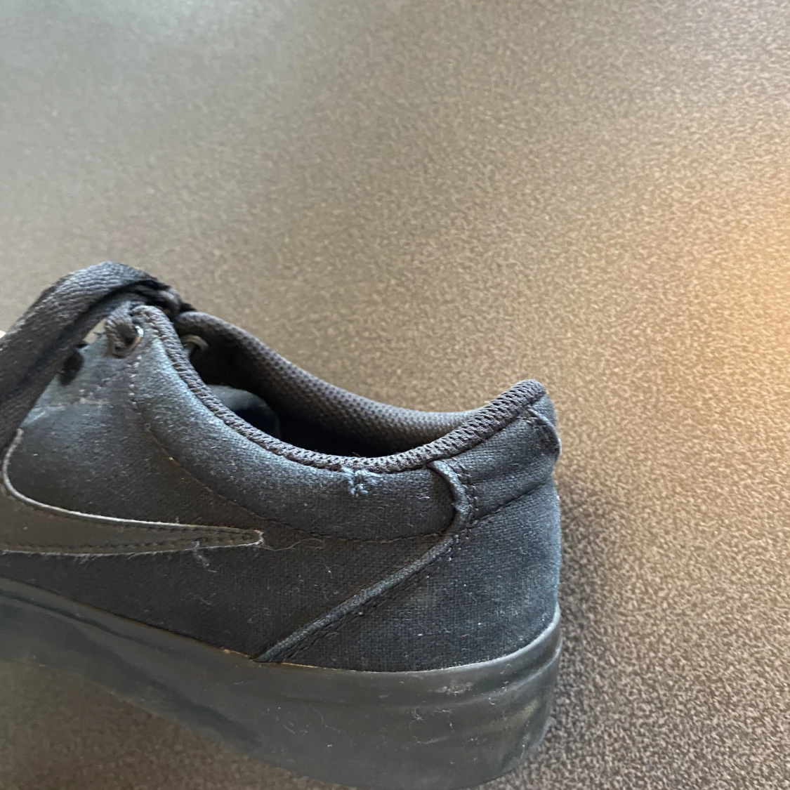 Sparsamt använda. Storlek 42. Funkar perfekt som skateskor! Liten spricka i tyget på utsidan av ena skona och insidan på den andra (se bild). Ny pris 750